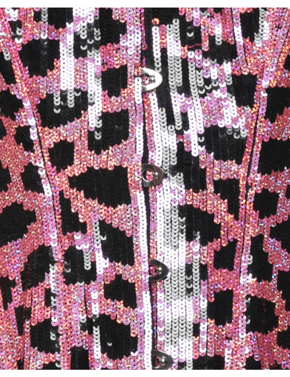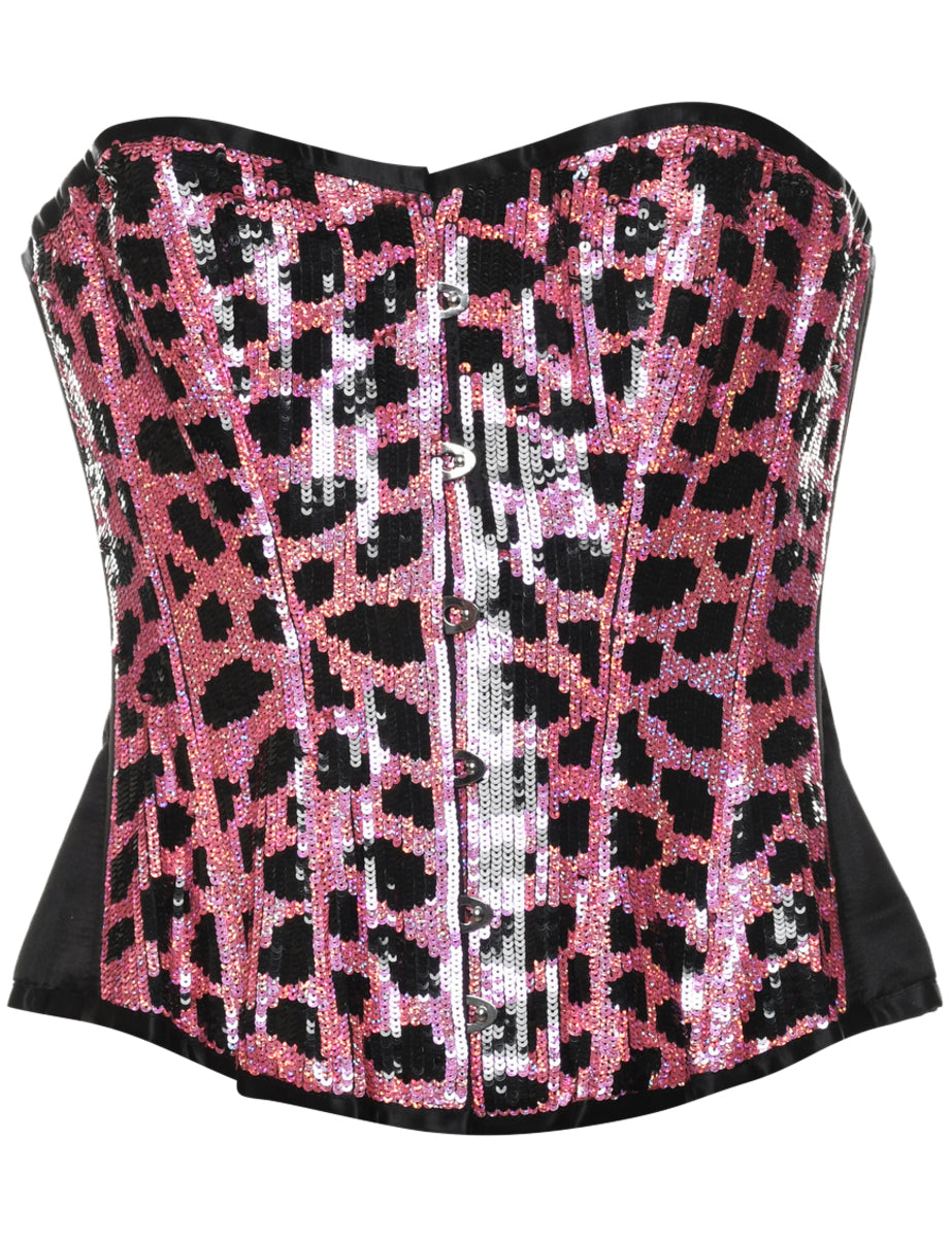 Corset in pink & black with sequins.
