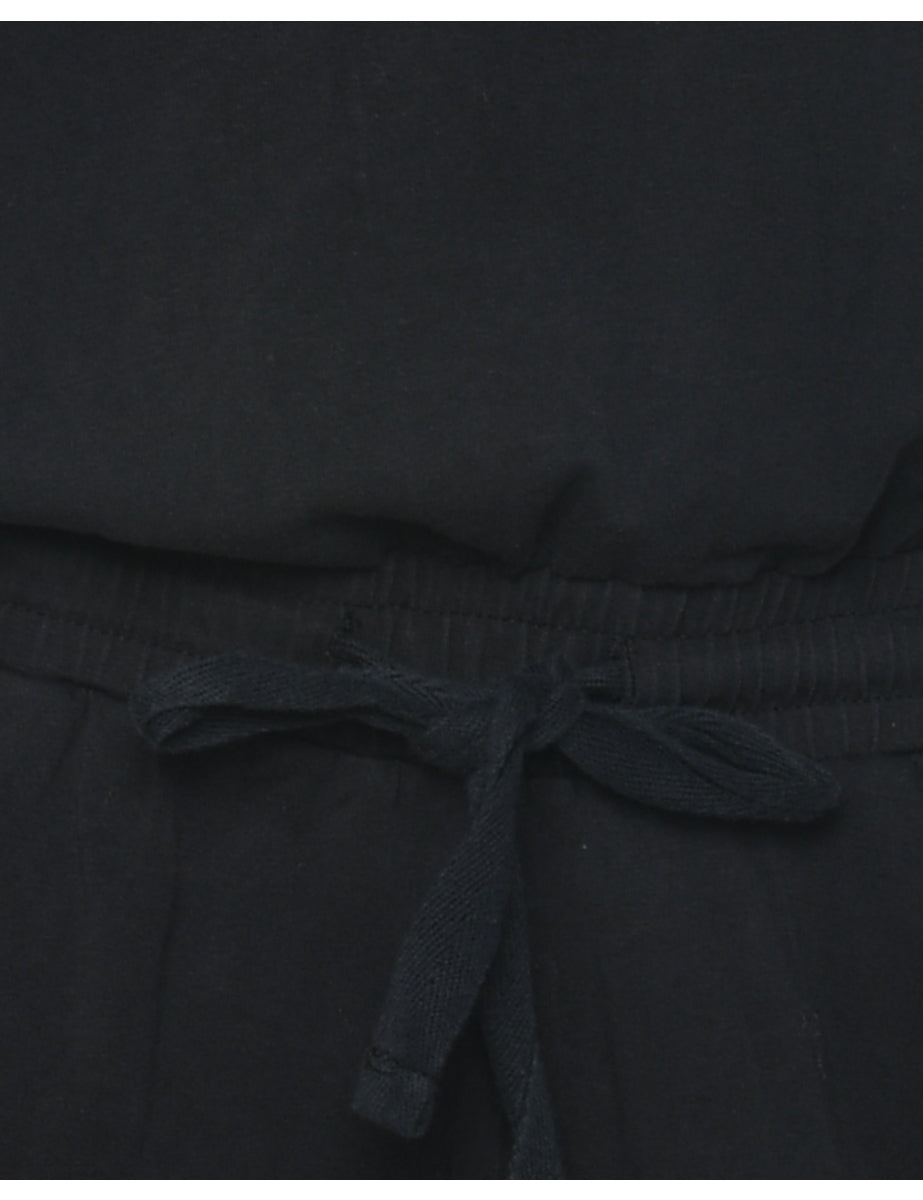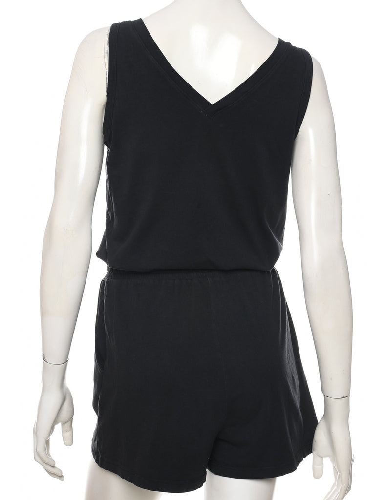 Sleeveless playsuit in black with a v-neck and an elasticized waist.