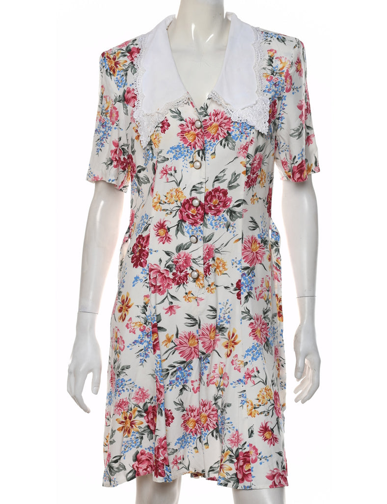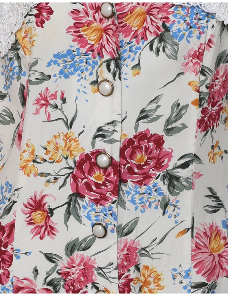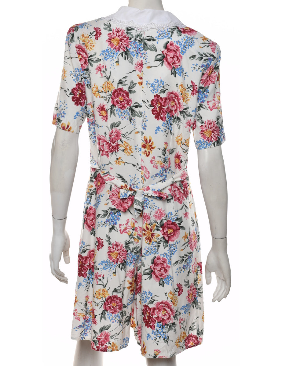 Floral Pattern 1980s Oversized Collar Playsuit - L