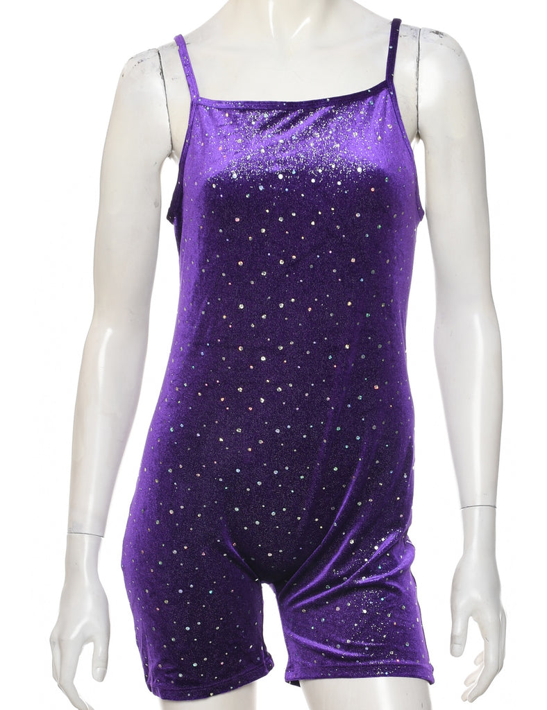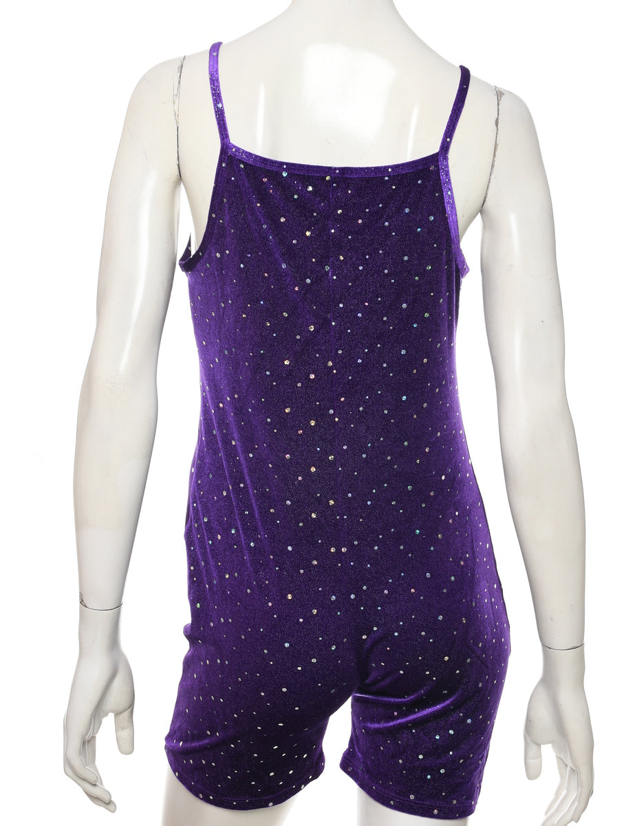 Velvet playsuit with glitter. Comes in purple.