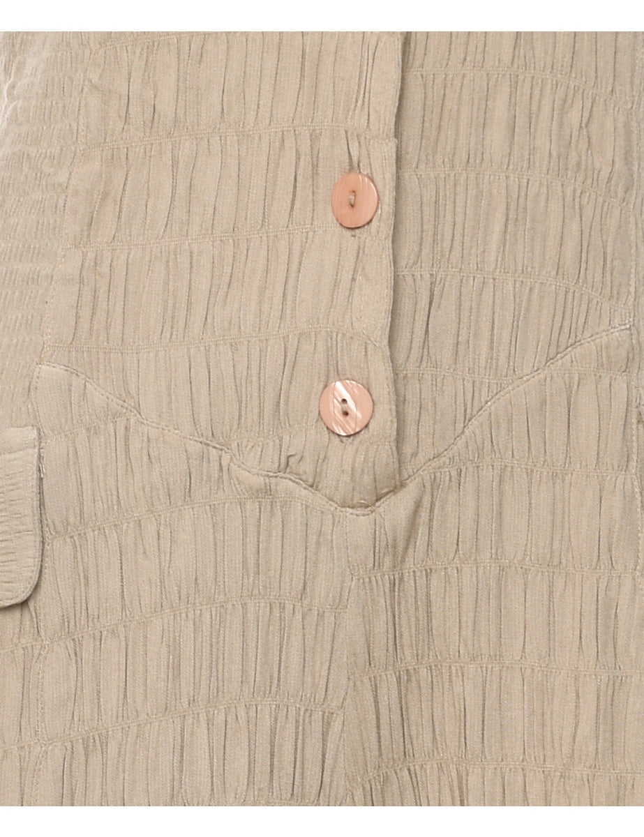 Button front playsuit in light brown with decorative pockets.