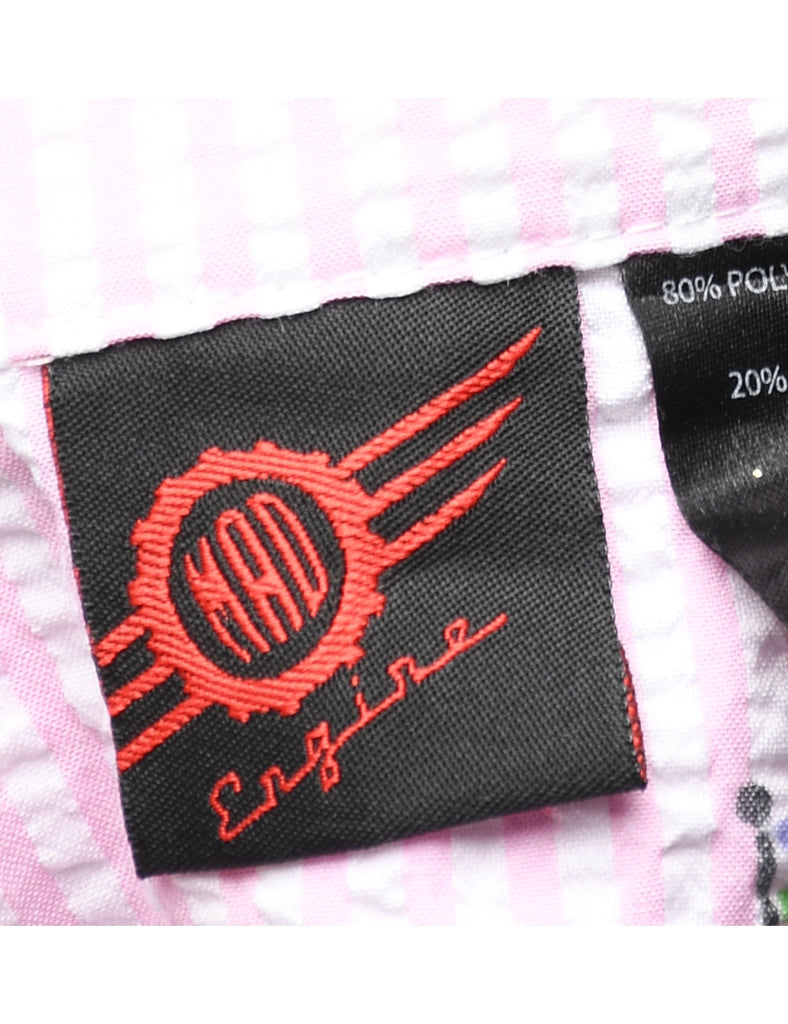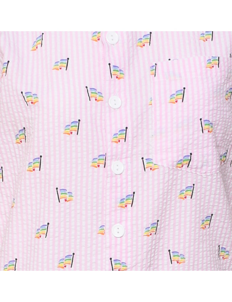 Striped pale pink playsuit with a classic collar. The size label mentions S but based on the actual measurements we consider it a size L.