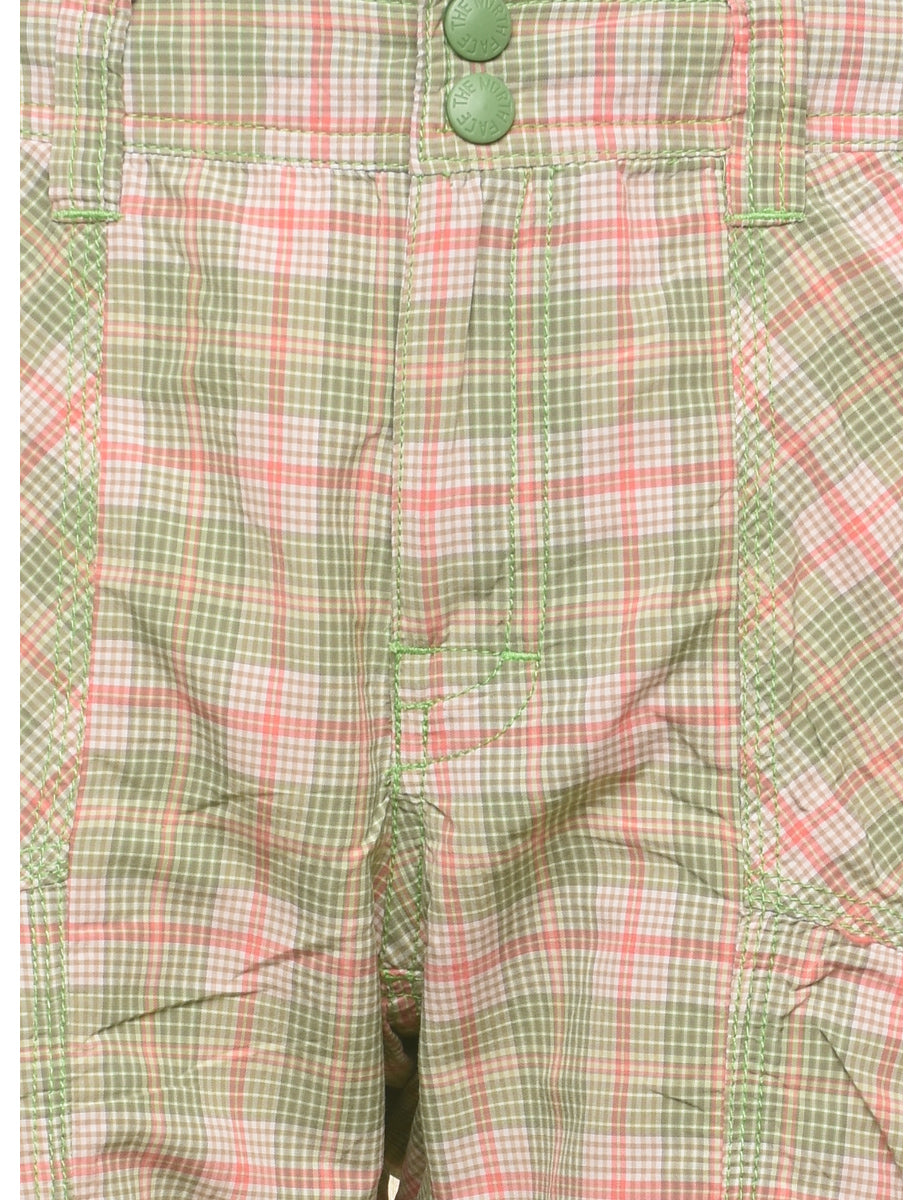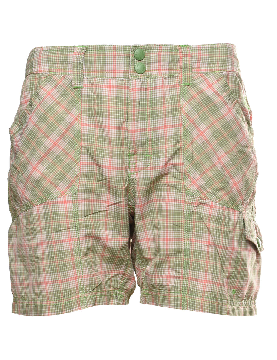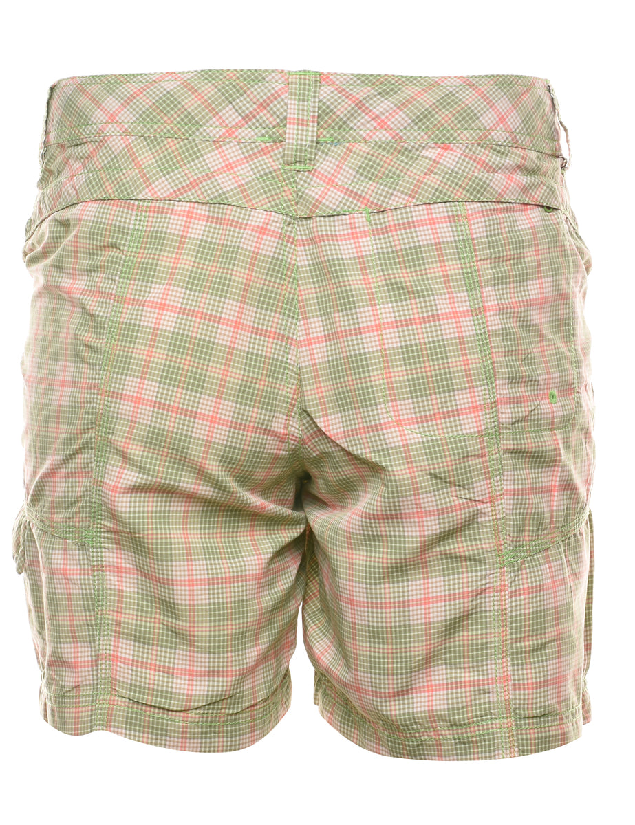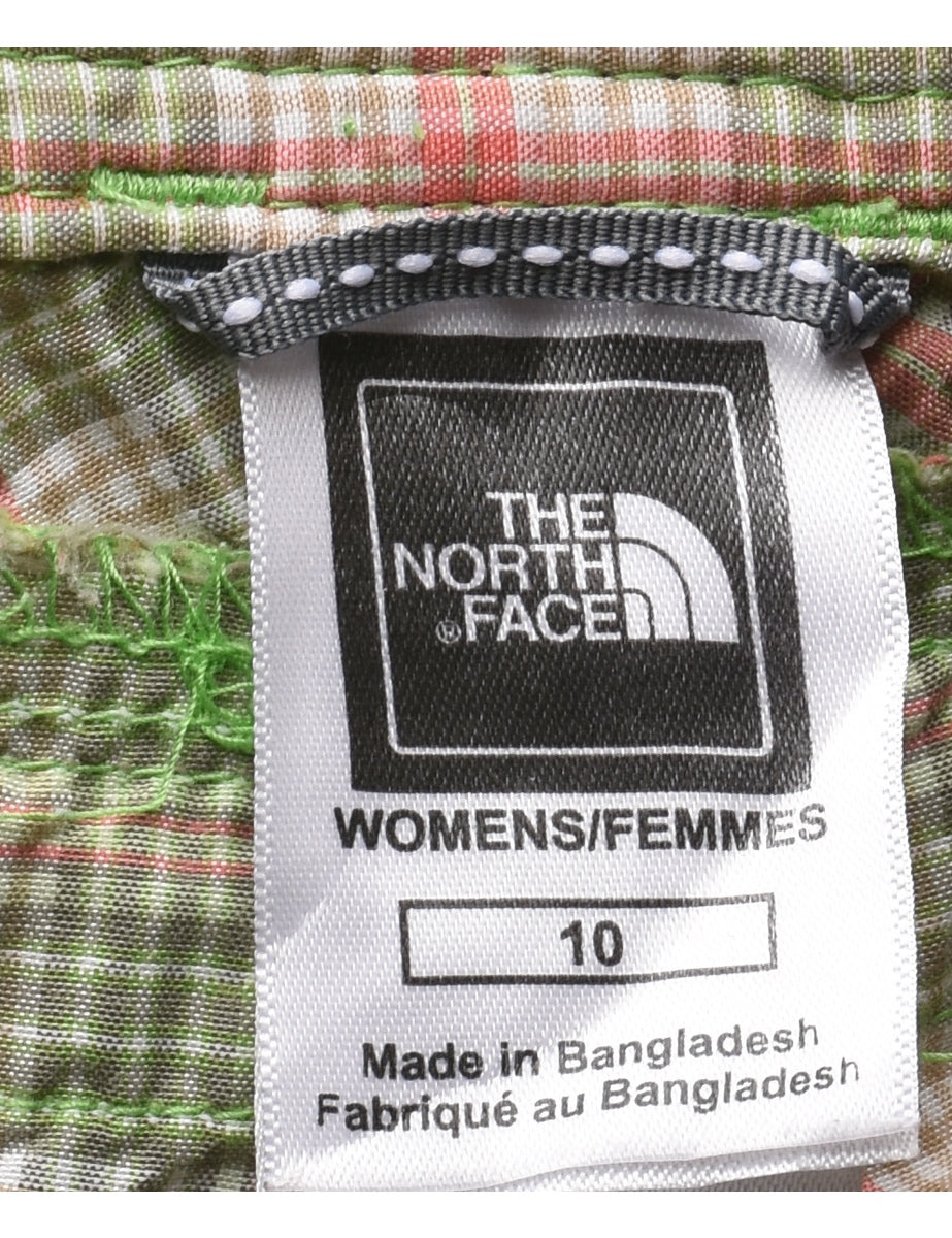 The North Face checked shorts in green with belt loops and multiple pockets.