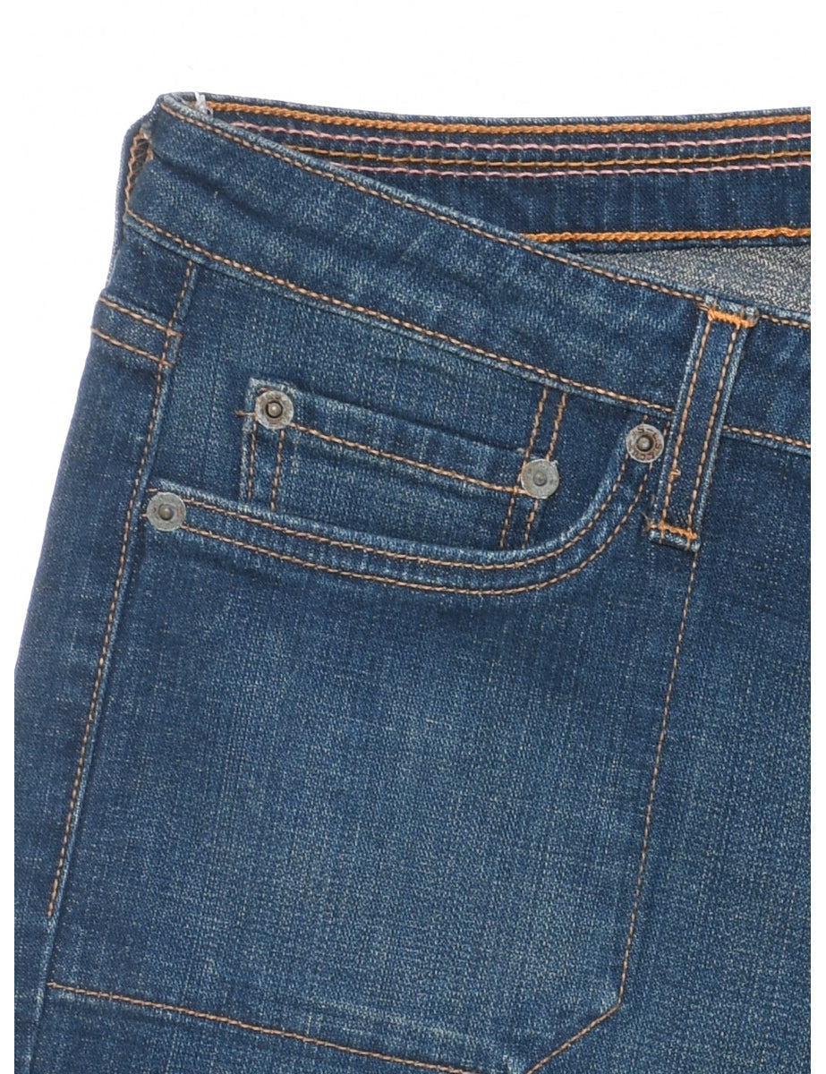 Classic rolled hem denim shorts in indigo with belt loops and multiple pockets.