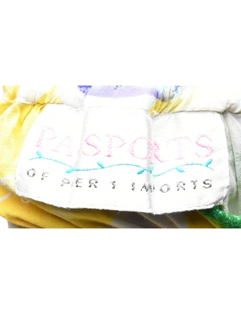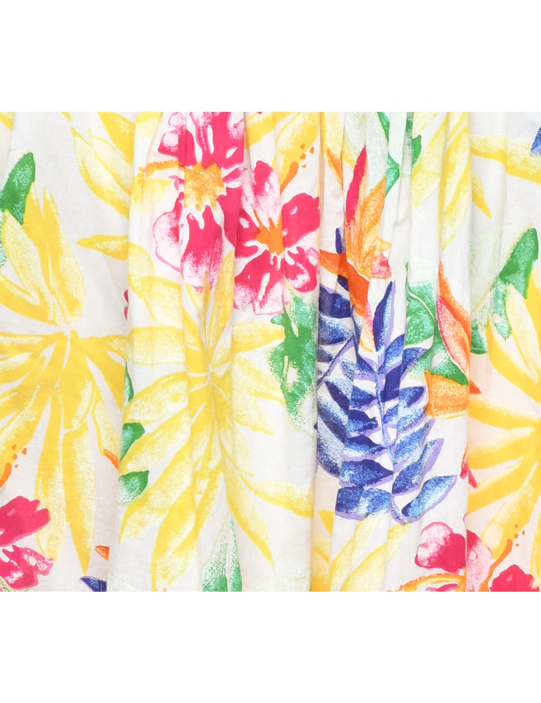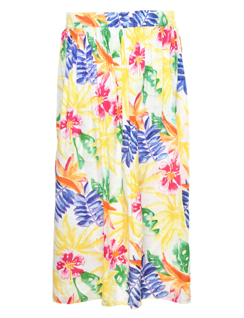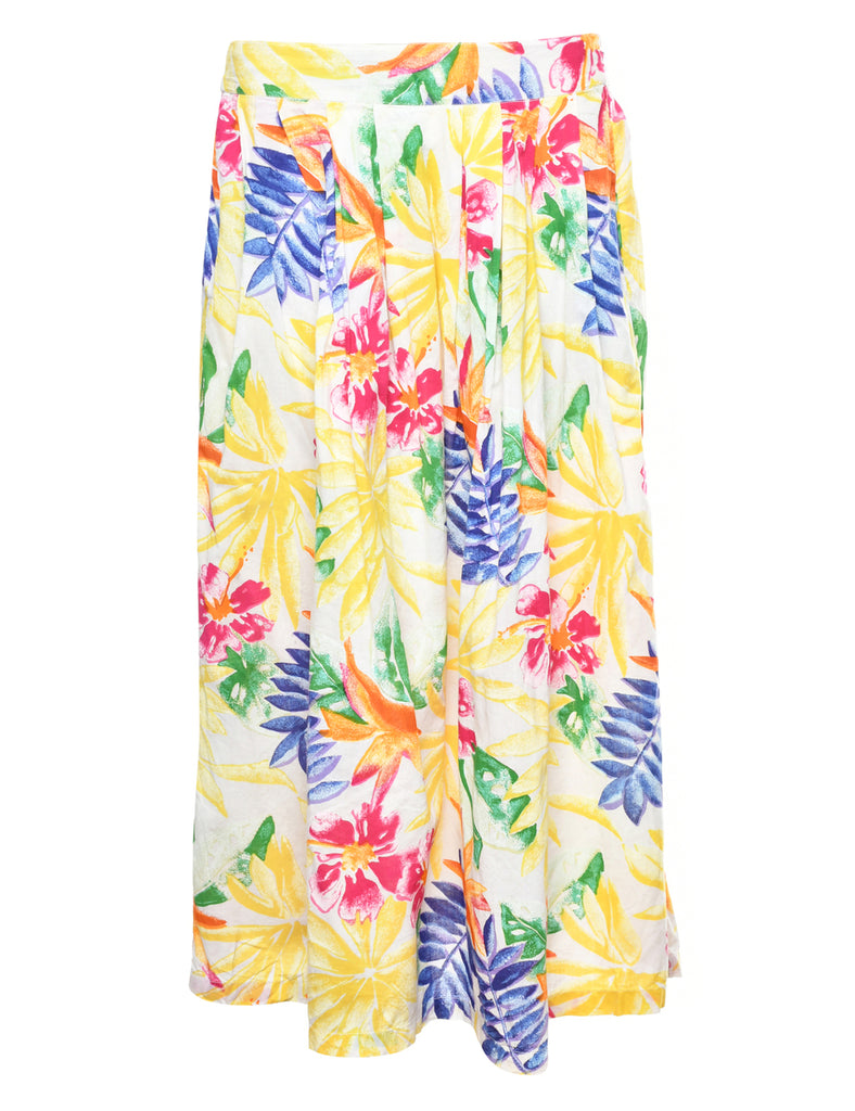 Hawaiian print multi-colour pleated skirt with an elasticized back and two pockets.