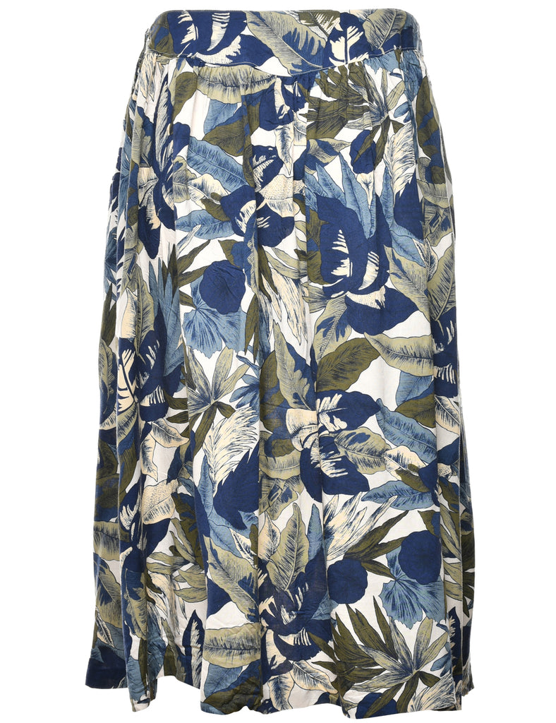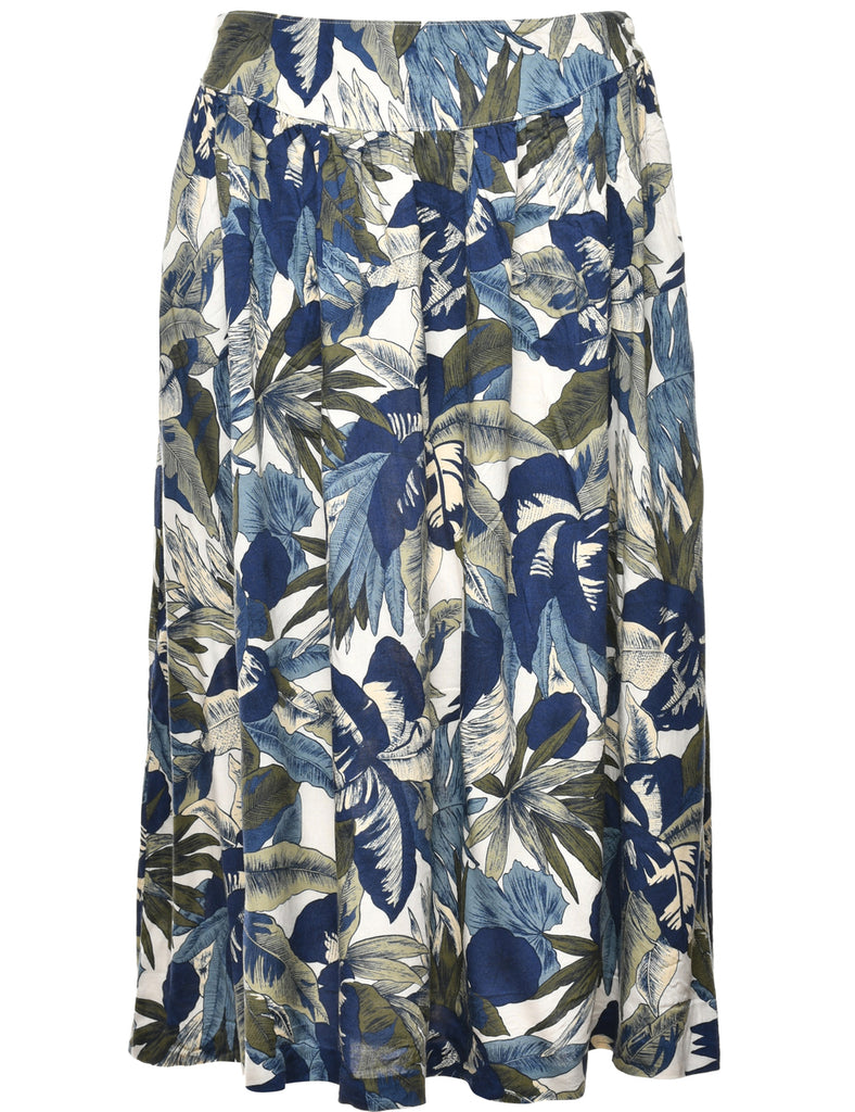 Leafy Print Pleated Skirt - L