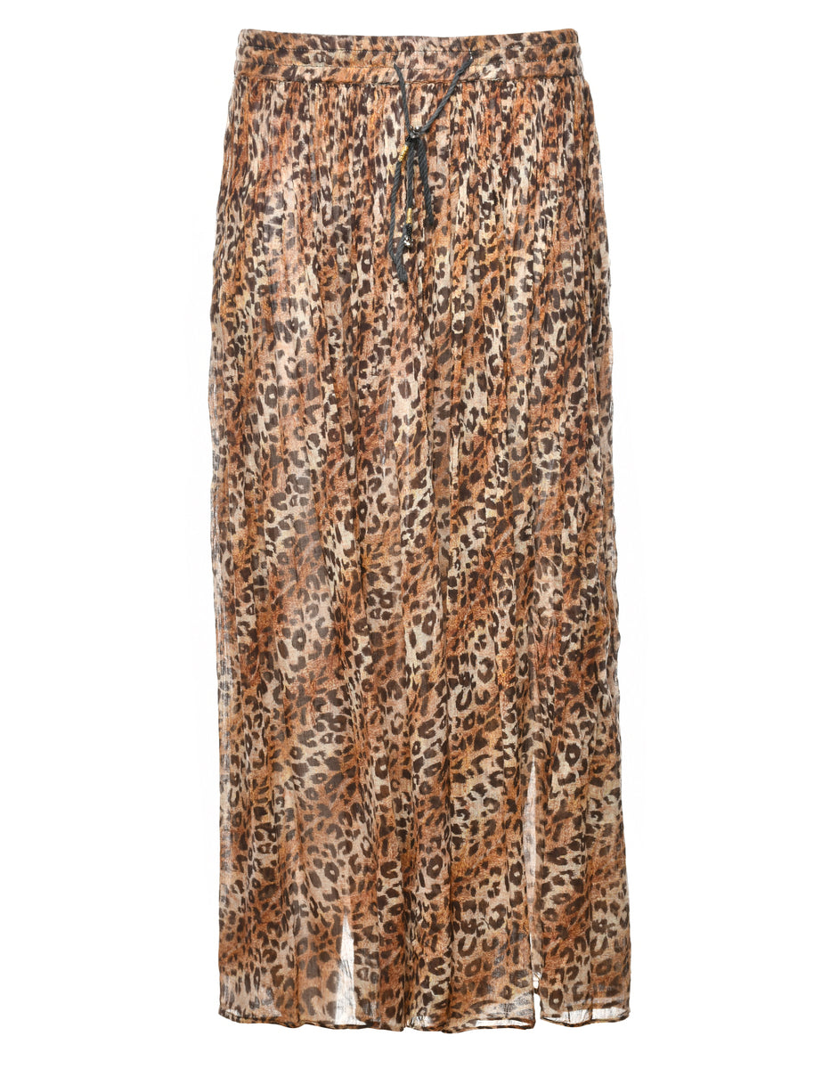 Leopard print full skirt. Comes in brown with a drawstring waist.