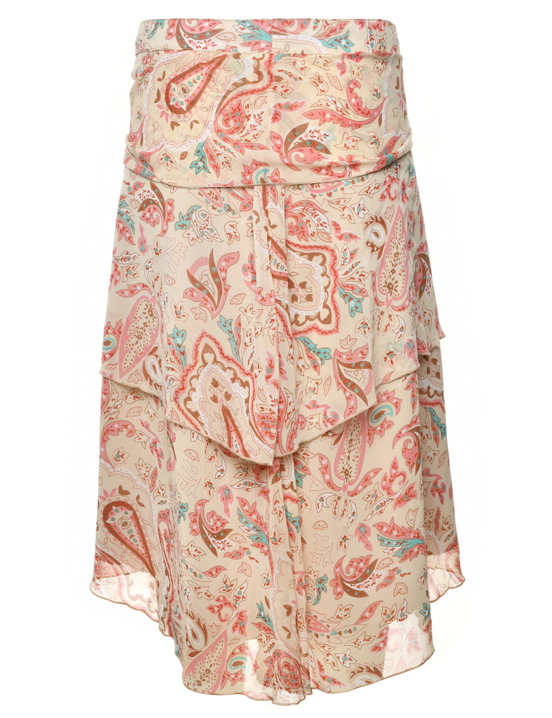 Paisley print maxi skirt in cream with an asymetric hem and full lining.