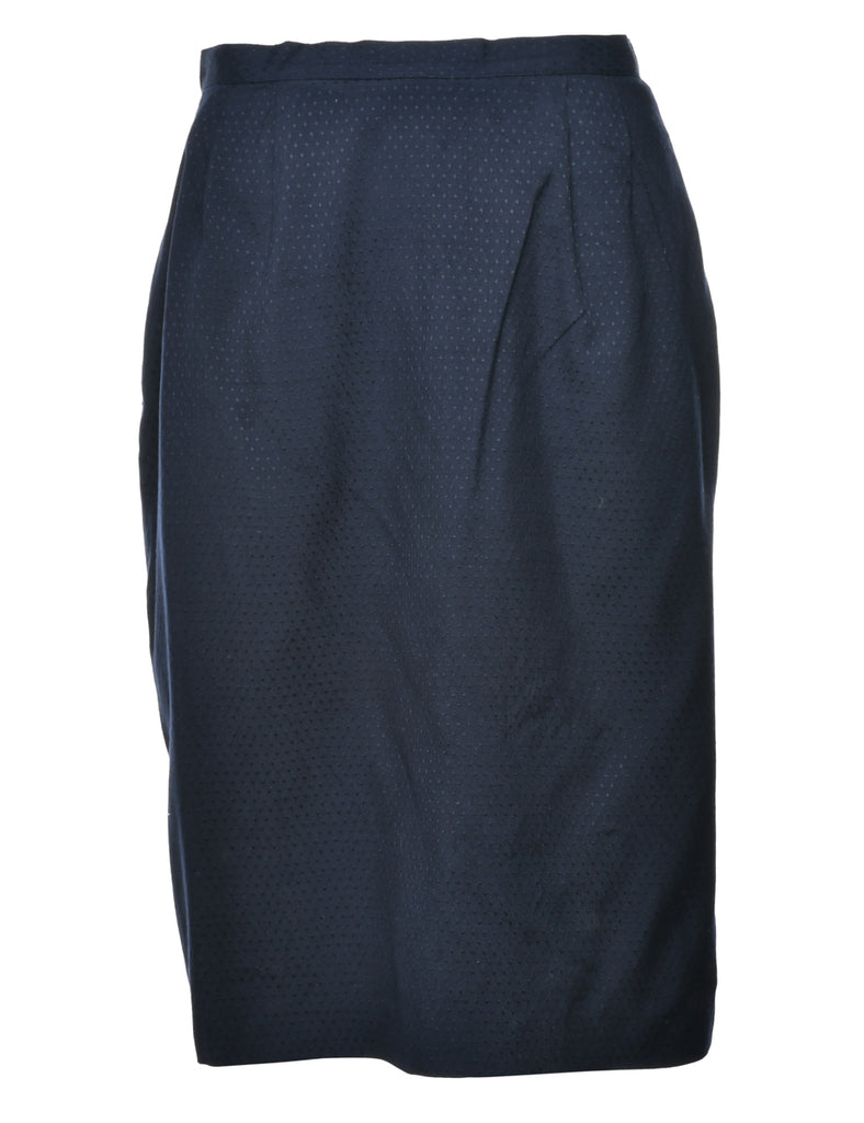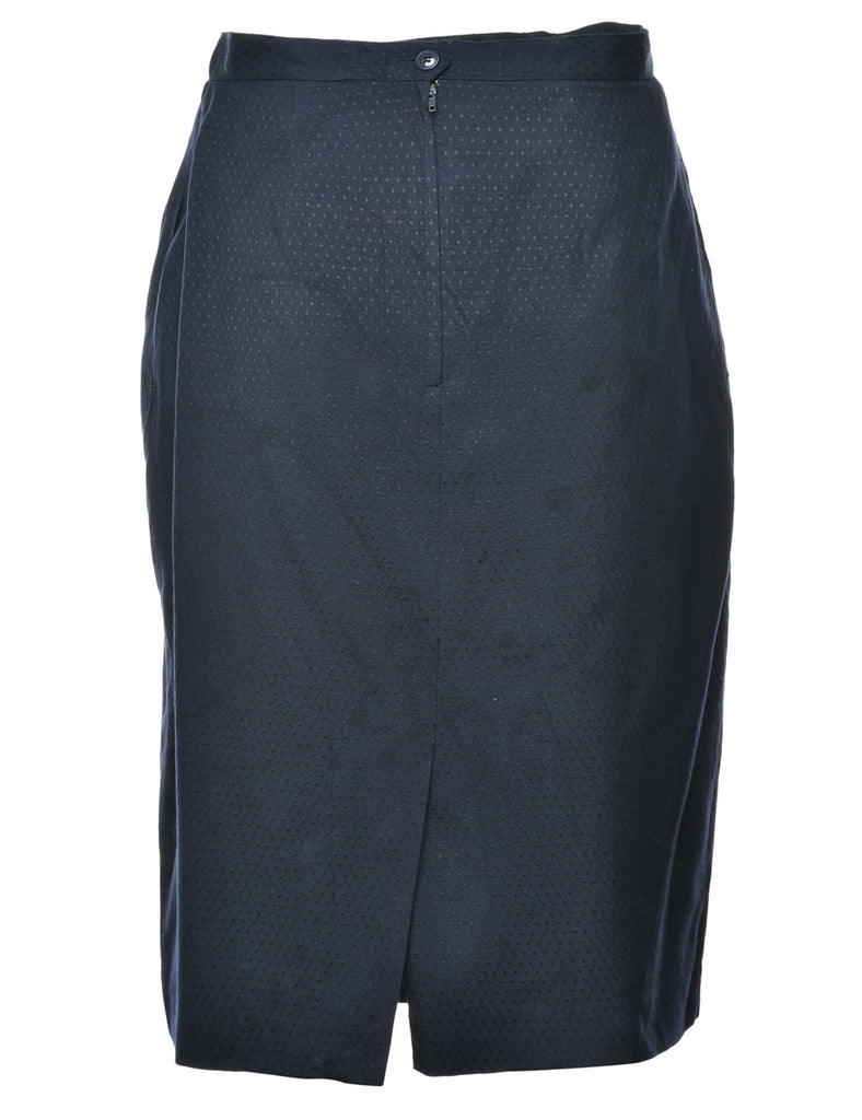 Pencil shape navy maxi skirt with a back vent and full lining.