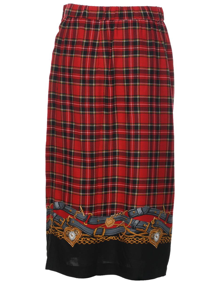 Tartan pencil skirt. Koret in red with an elasticized back and pleating.