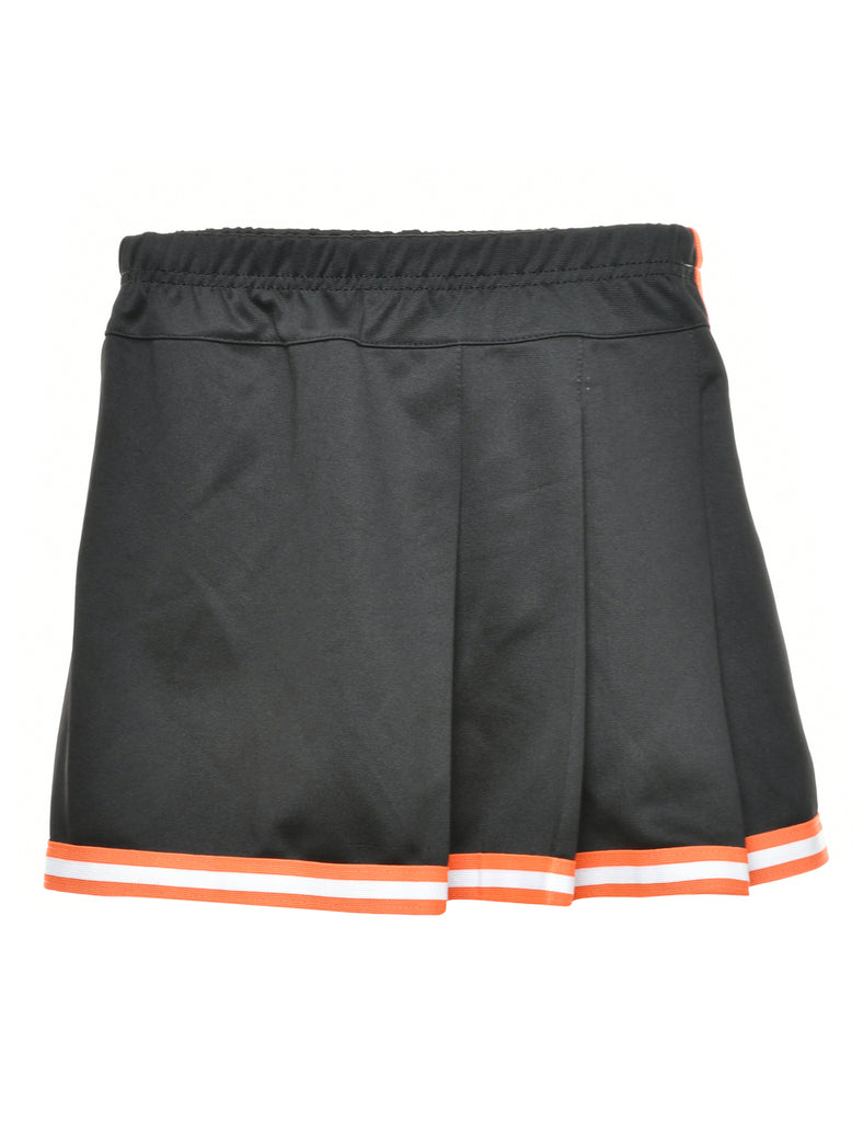 A-line pleated skirt. Comes in black with an elasticized waist. The size label mentions L but based on the actual measurements we consider it a size S.