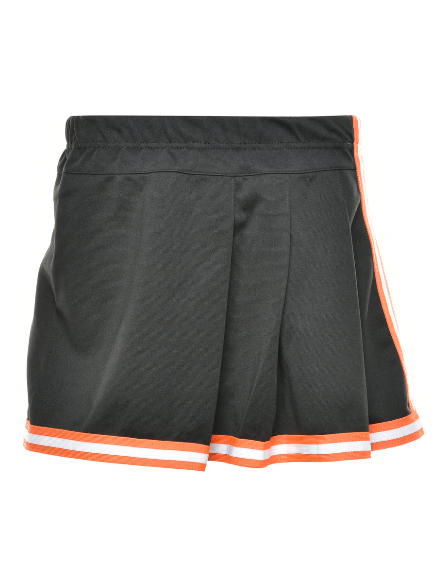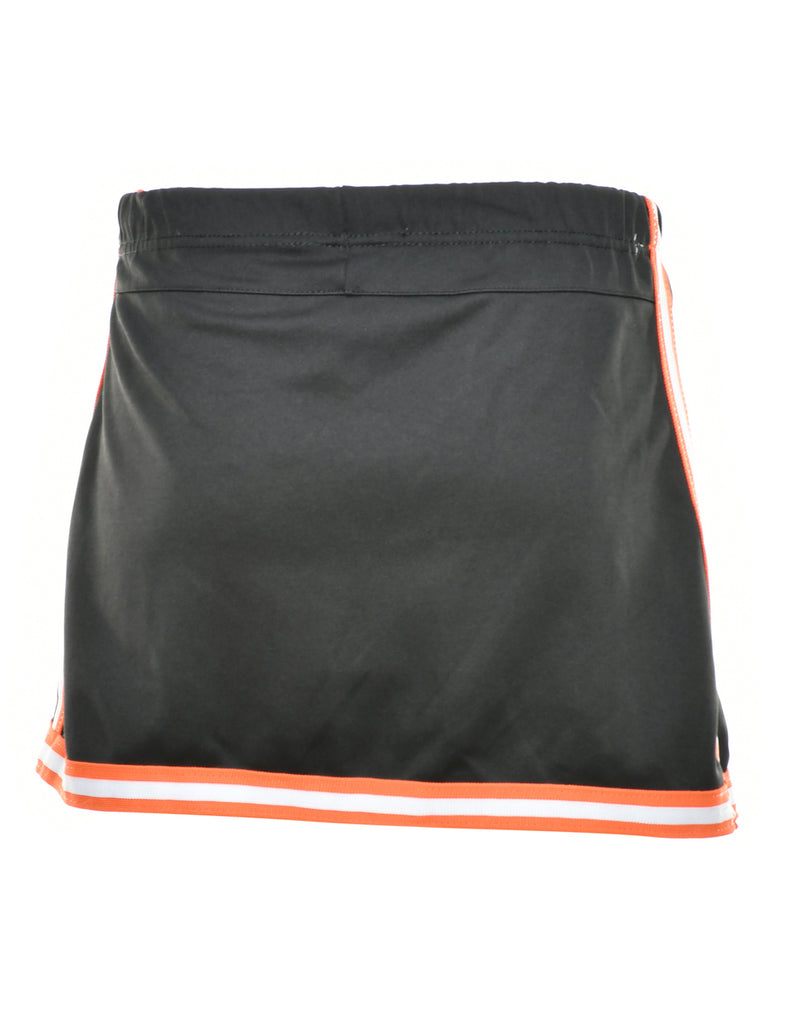 A-line sport skirt. Comes in black with front pleats and an elasticized waist. The size label mentions M but based on the actual measurements we consider it a size S.