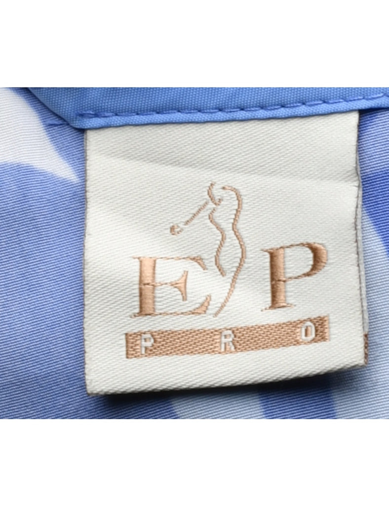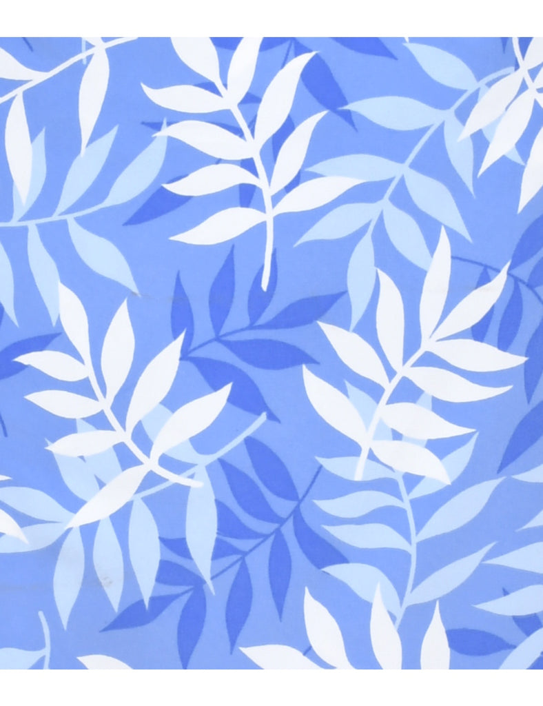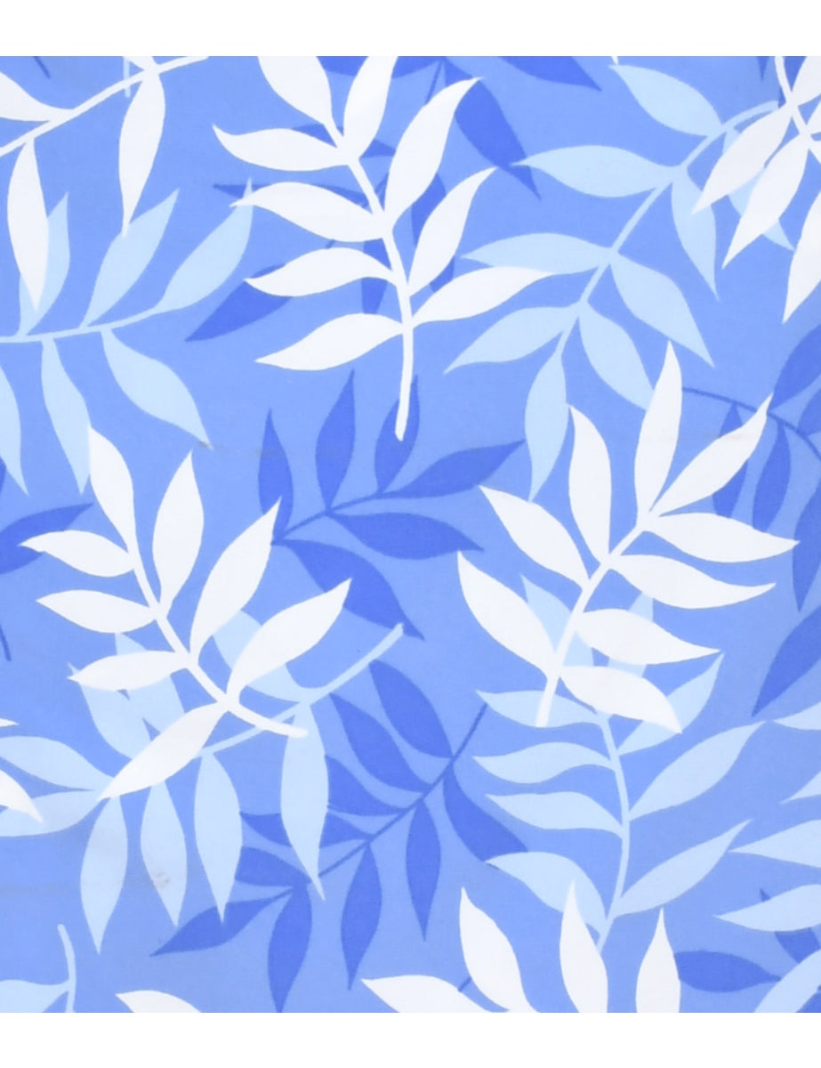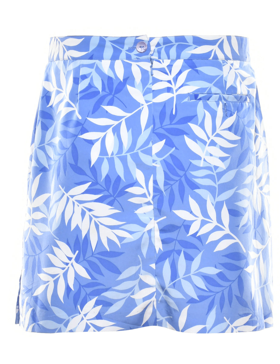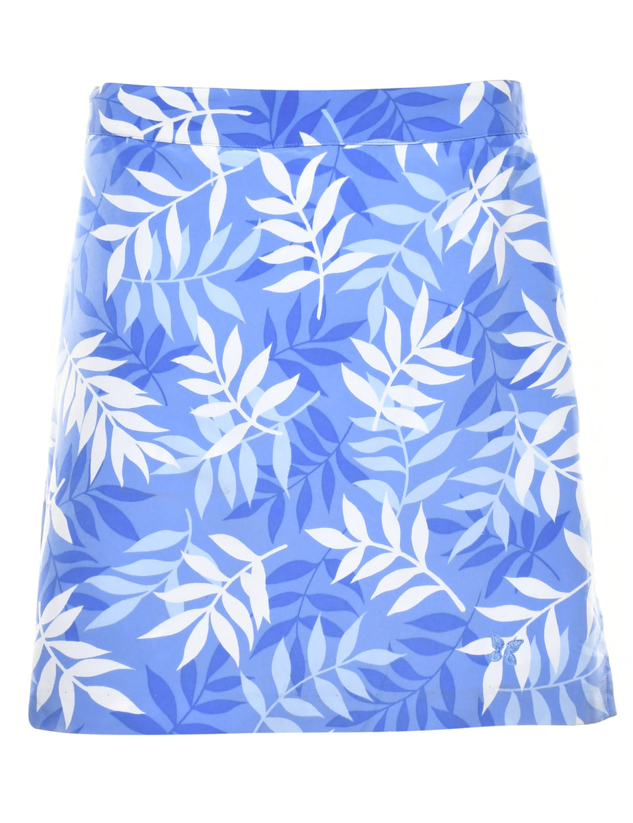 a-line skirt with foliage print. Comes in blue with two pockets.