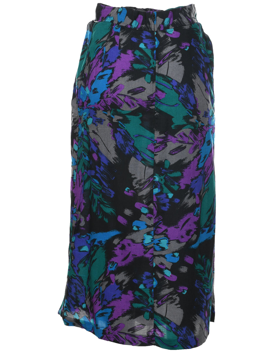 Abstract print maxi skirt comes in multi-colour with pleating and multiple pockets.
