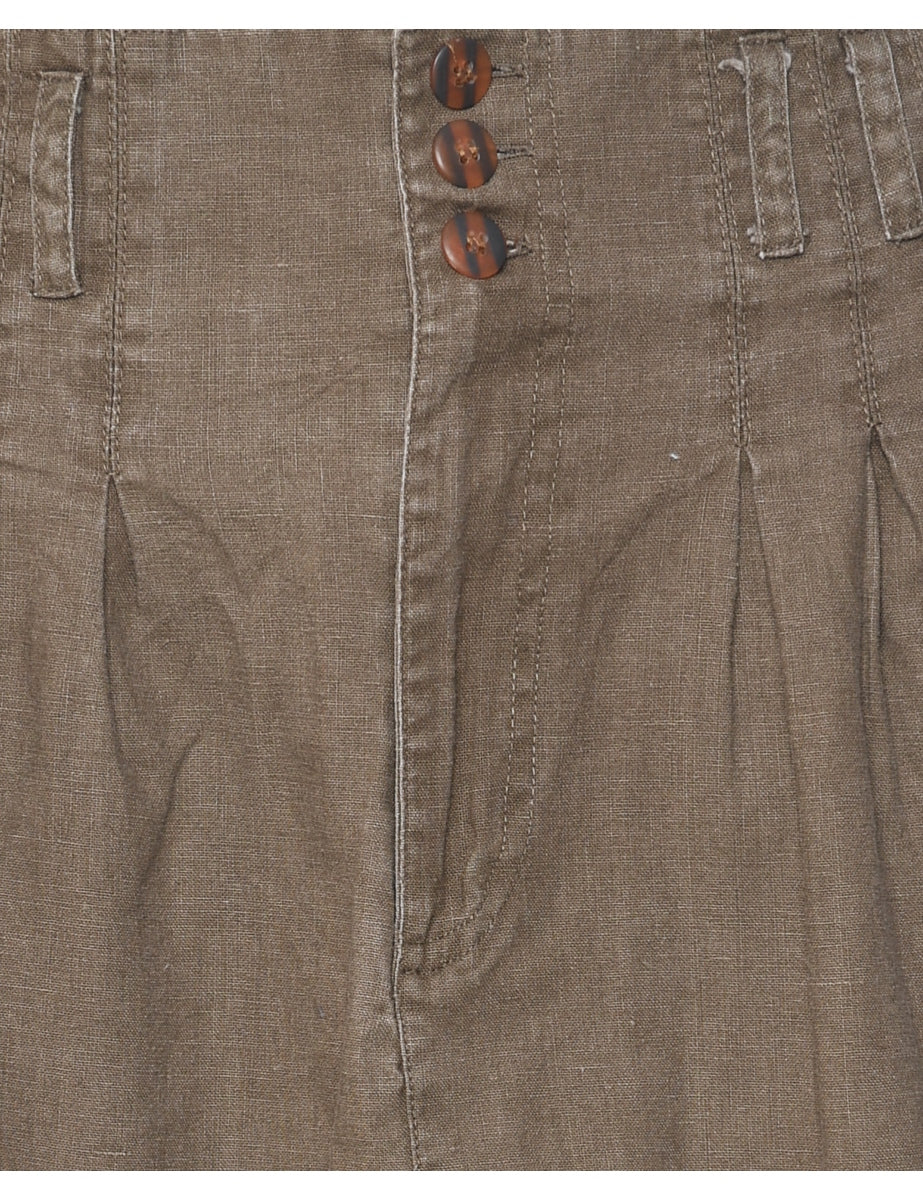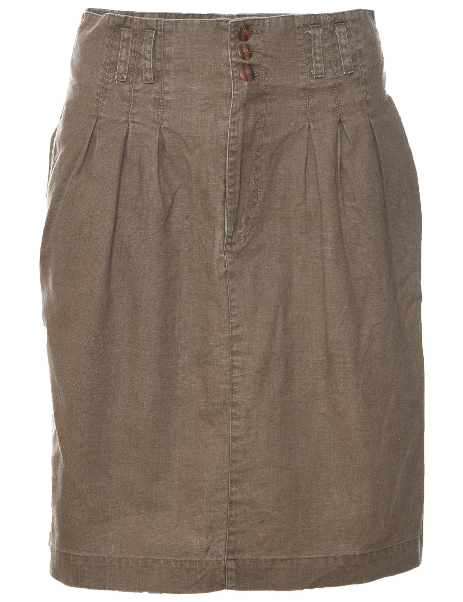 Pencil skirt comes in beige with pleating and multiple pockets.