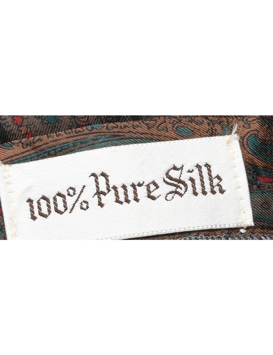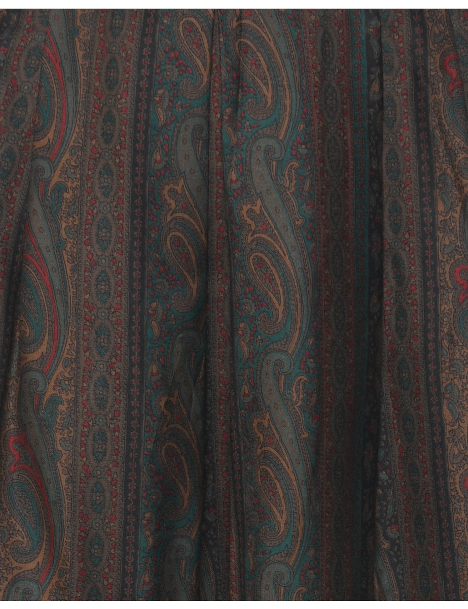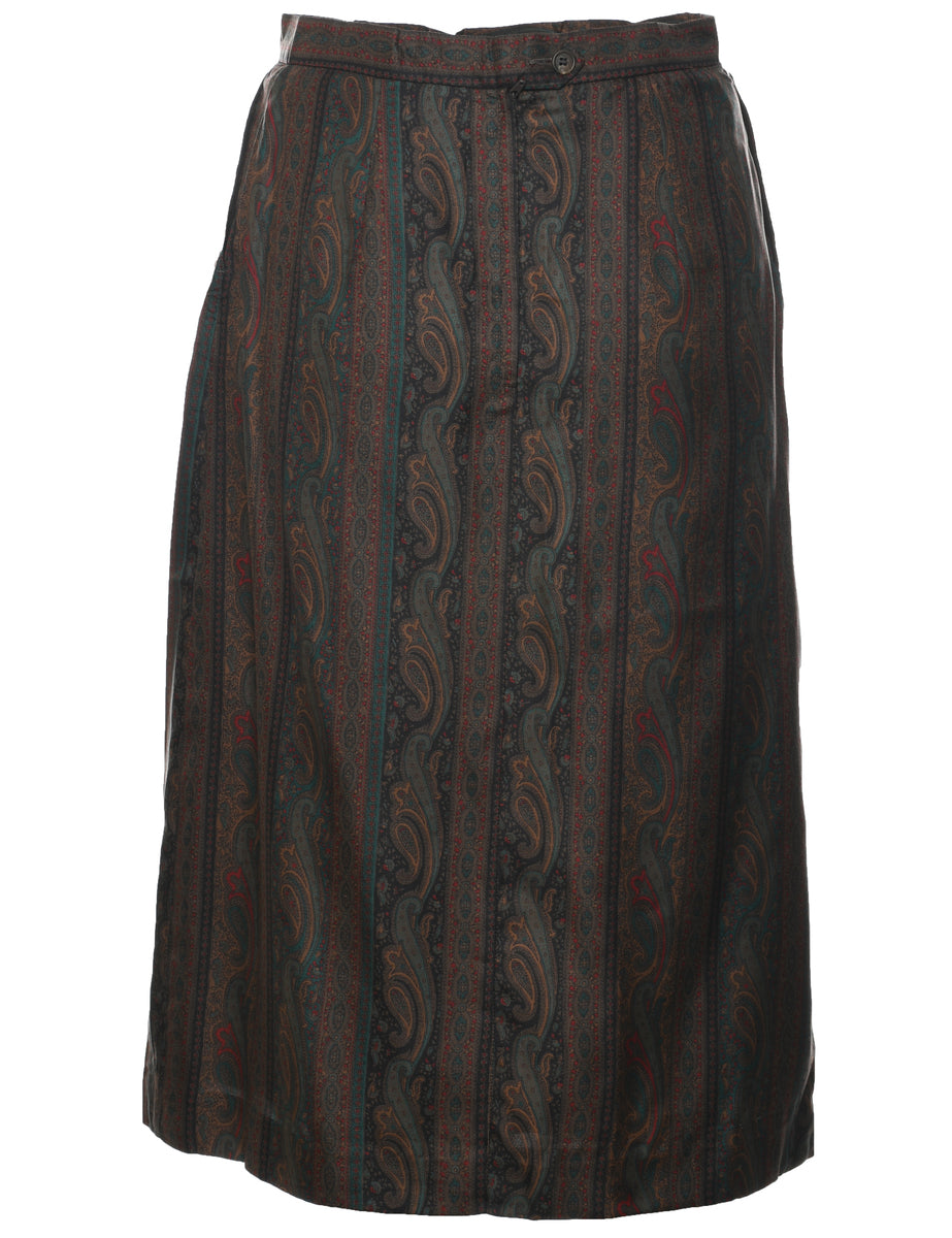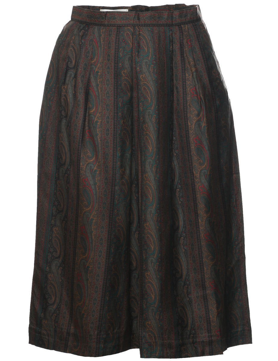 Silk Paisley Print Pleated Skirt - S