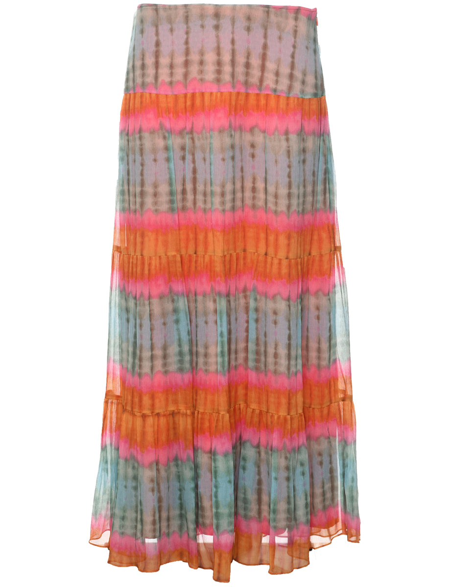 Tie dyed maxi skirt in multi-colour with ruched detailing.