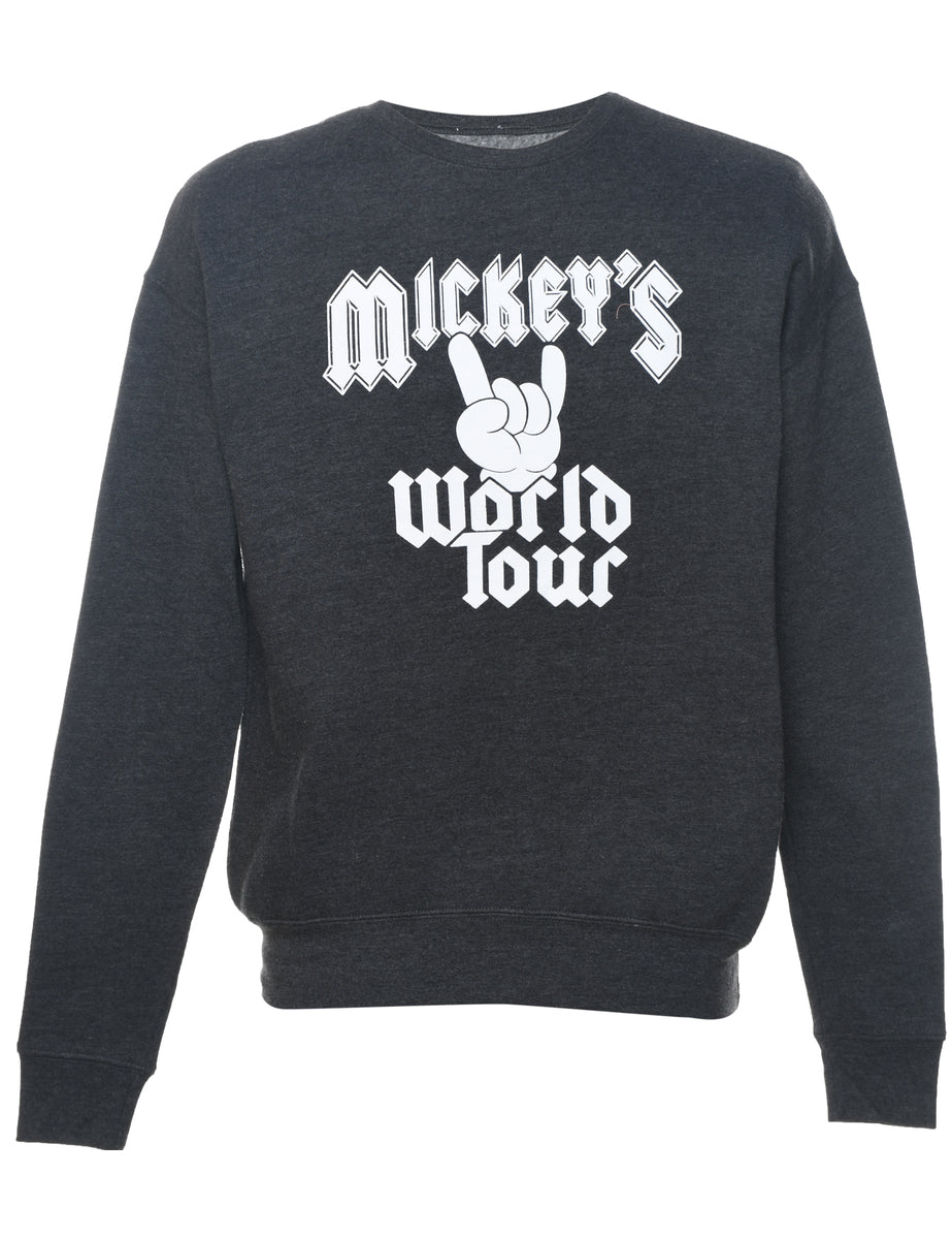 Vintage Mickey Disney Dark Grey & White Cartoon Sweatshirt - L