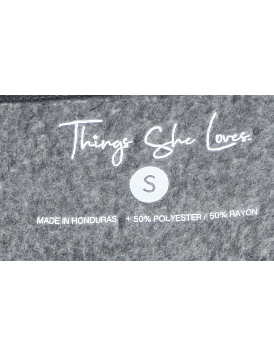 Dark grey Mickey Disney cartoon sweatshirt complete with a round neck and a drop shoulder. The size label mentions S but based on the actual measurements we consider it a size L.