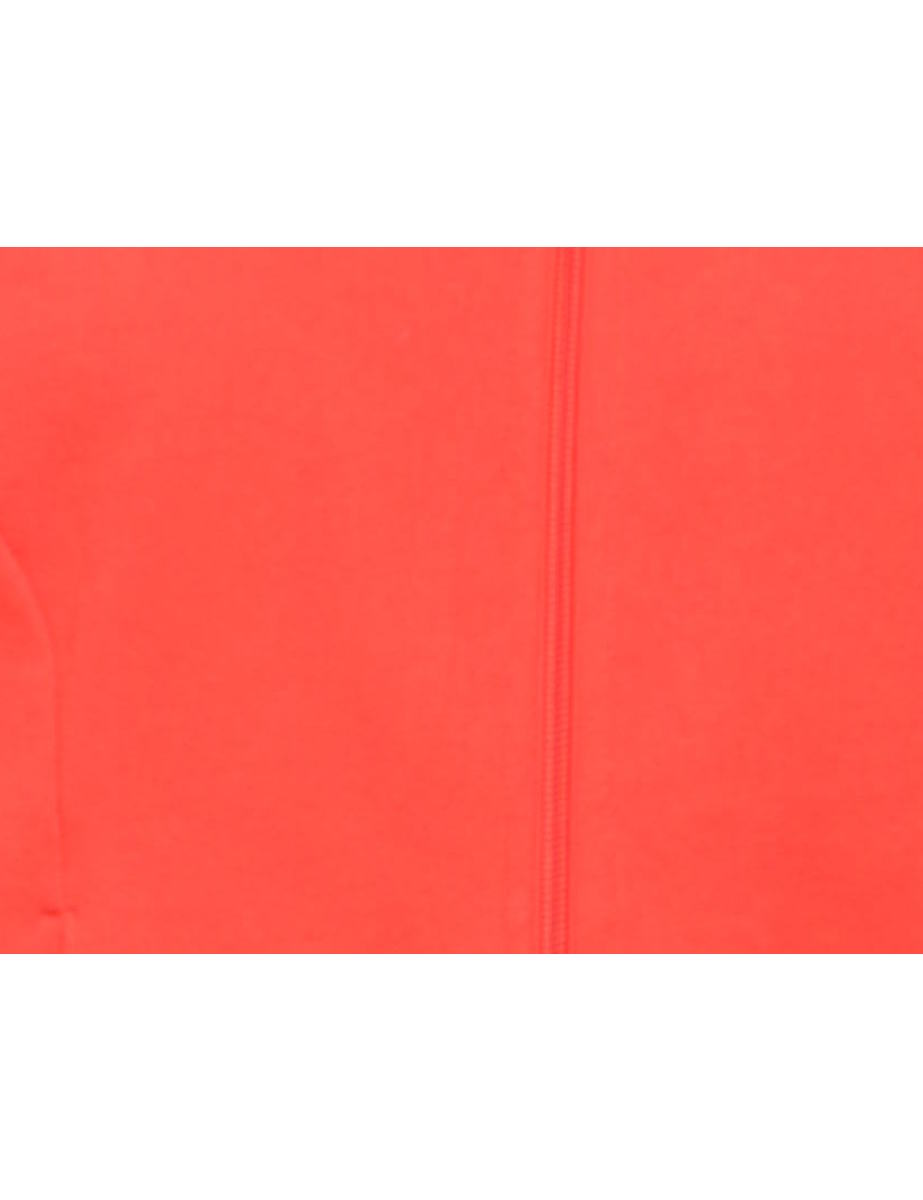 Red hooded sweatshirt with two pockets.