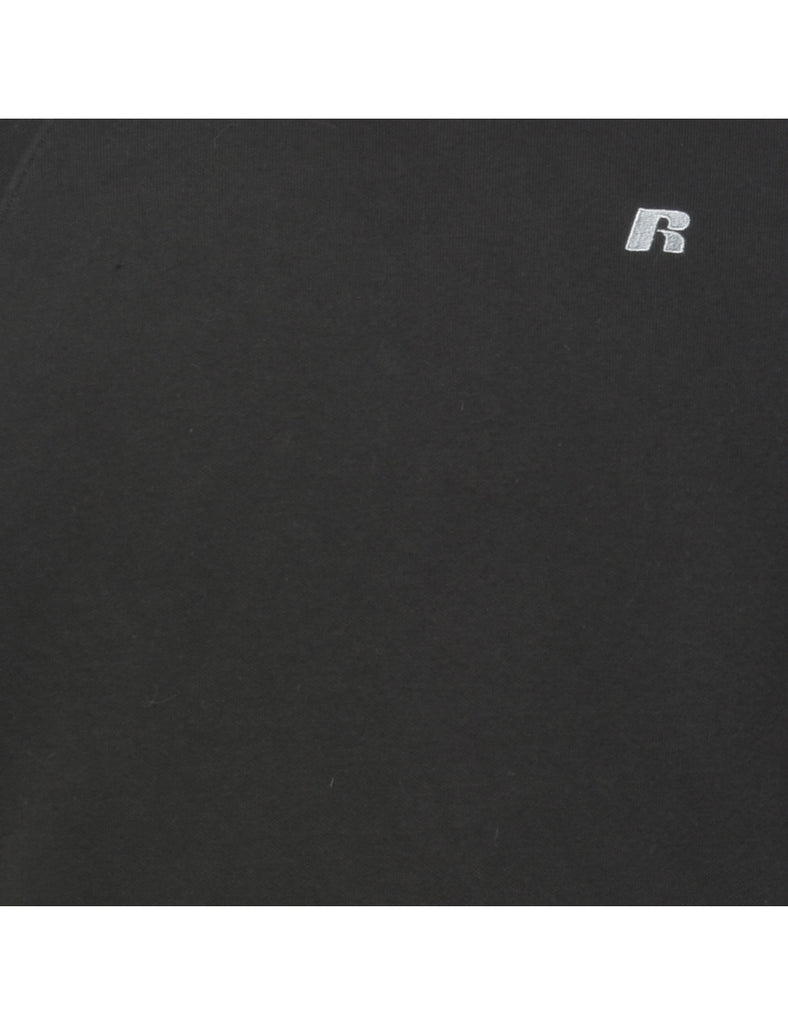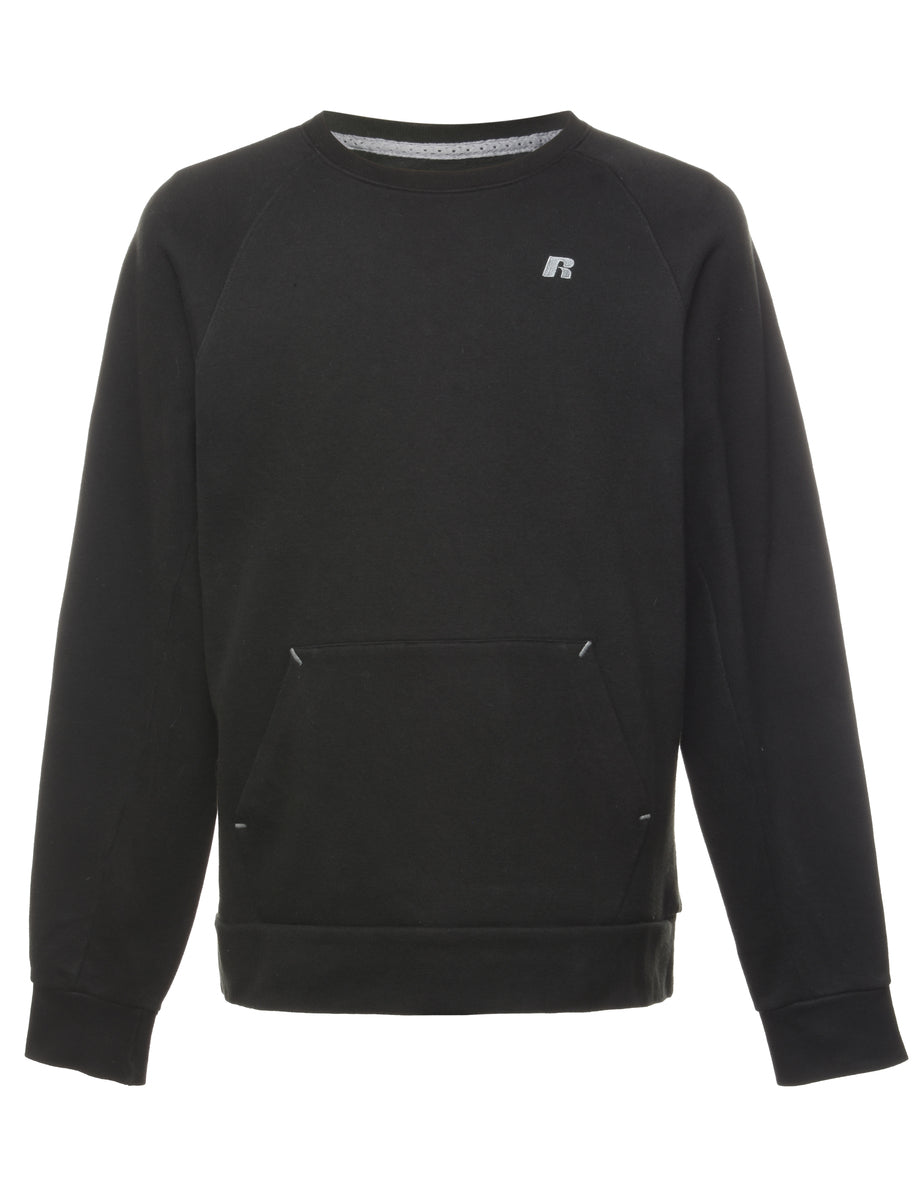 Russell Athletic plain sweatshirt comes in black with one pocket and raglan sleeves.