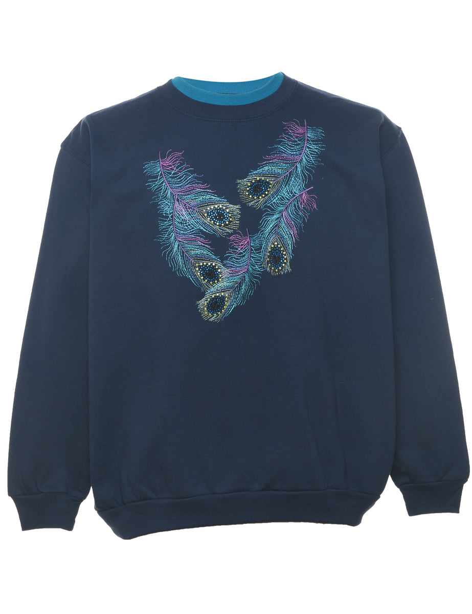 Embroidered 1980s feather design sweatshirt complete with a drop shoulder.