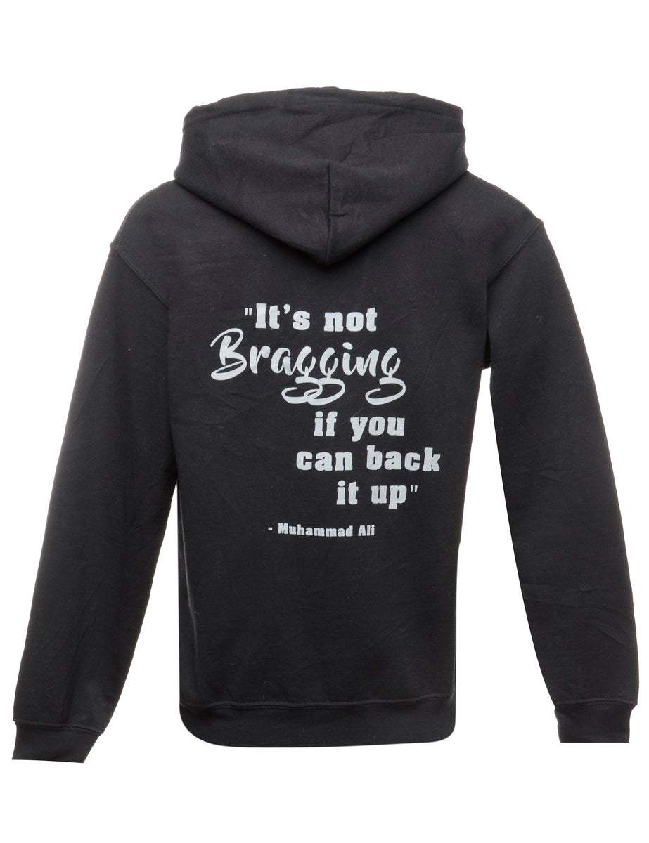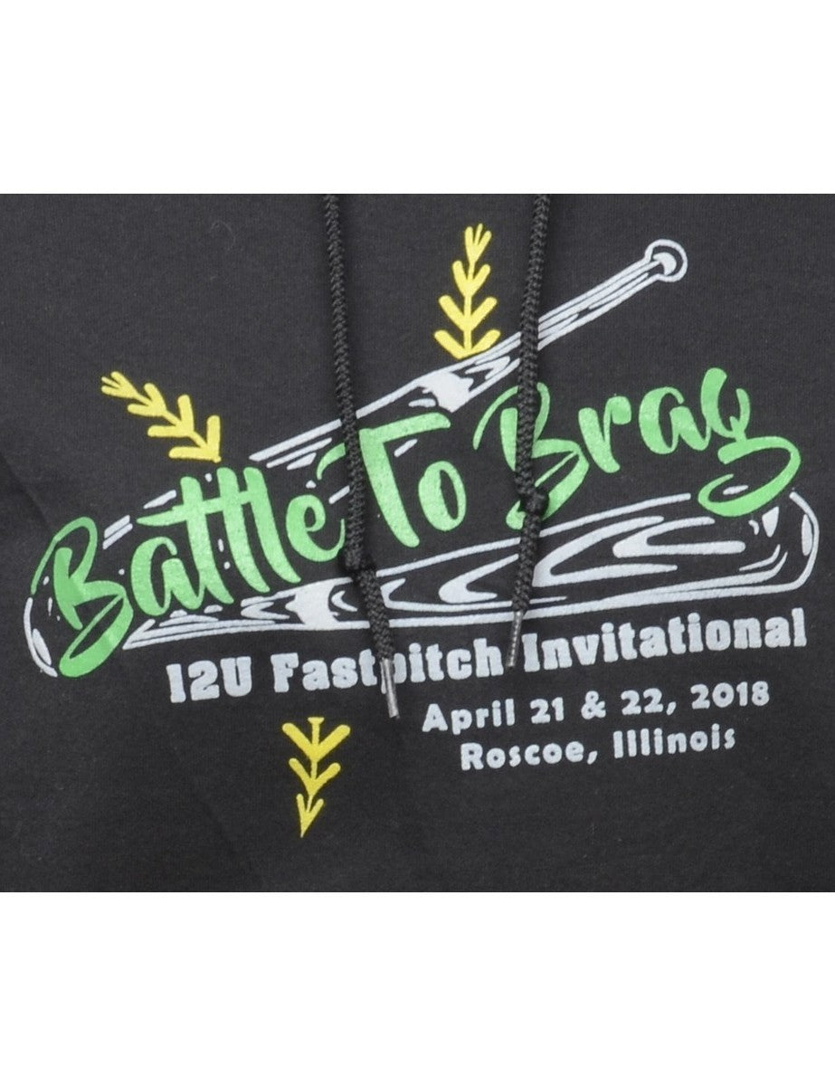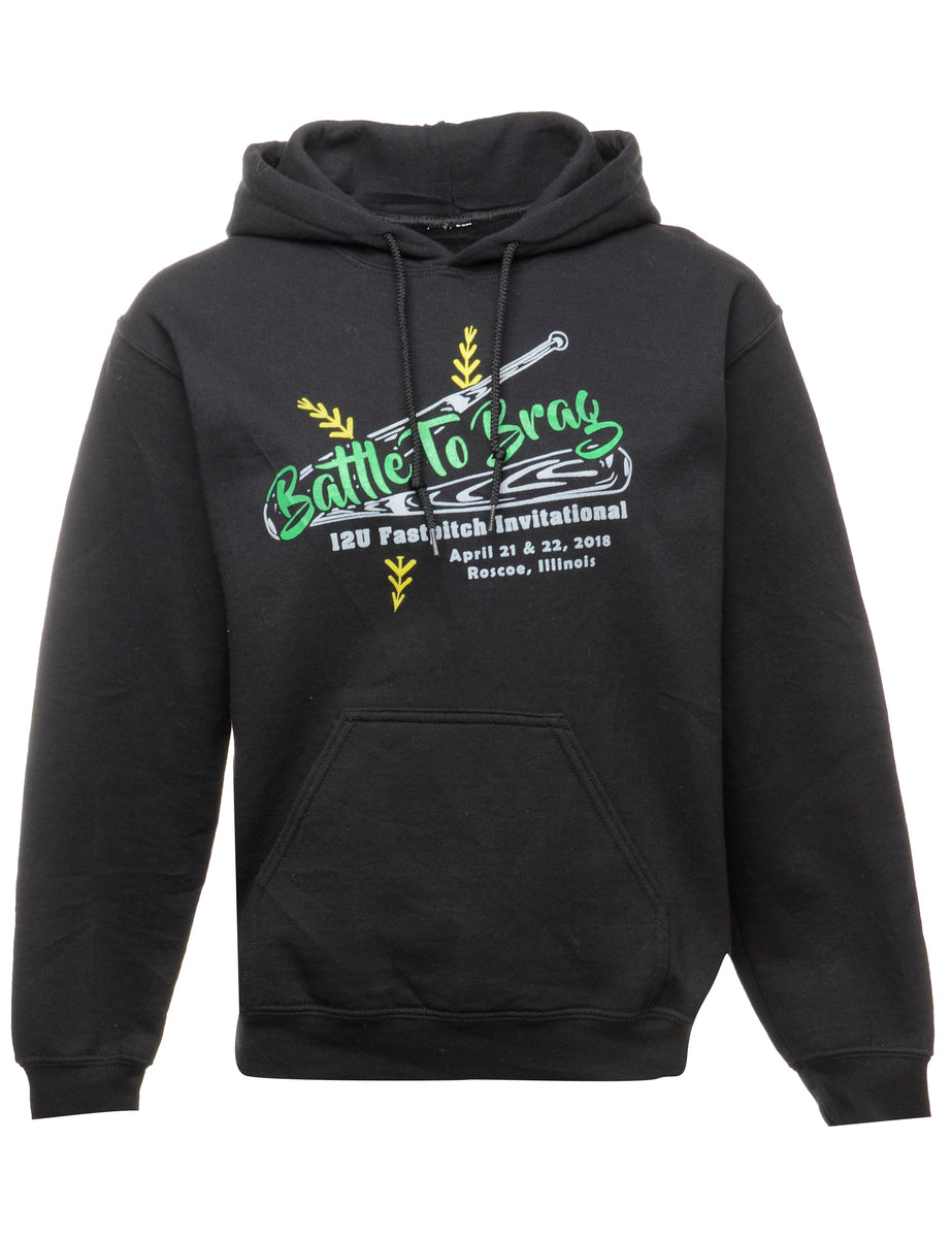 Battle to brag printed sweatshirt in black with one pocket.