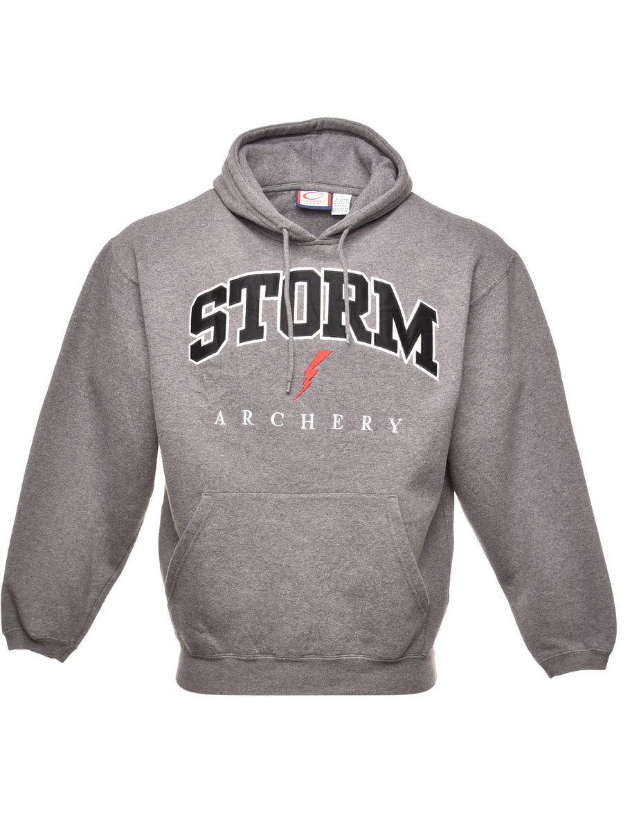 Athletic storm archery printed sweatshirt in grey with a hood and one pocket.