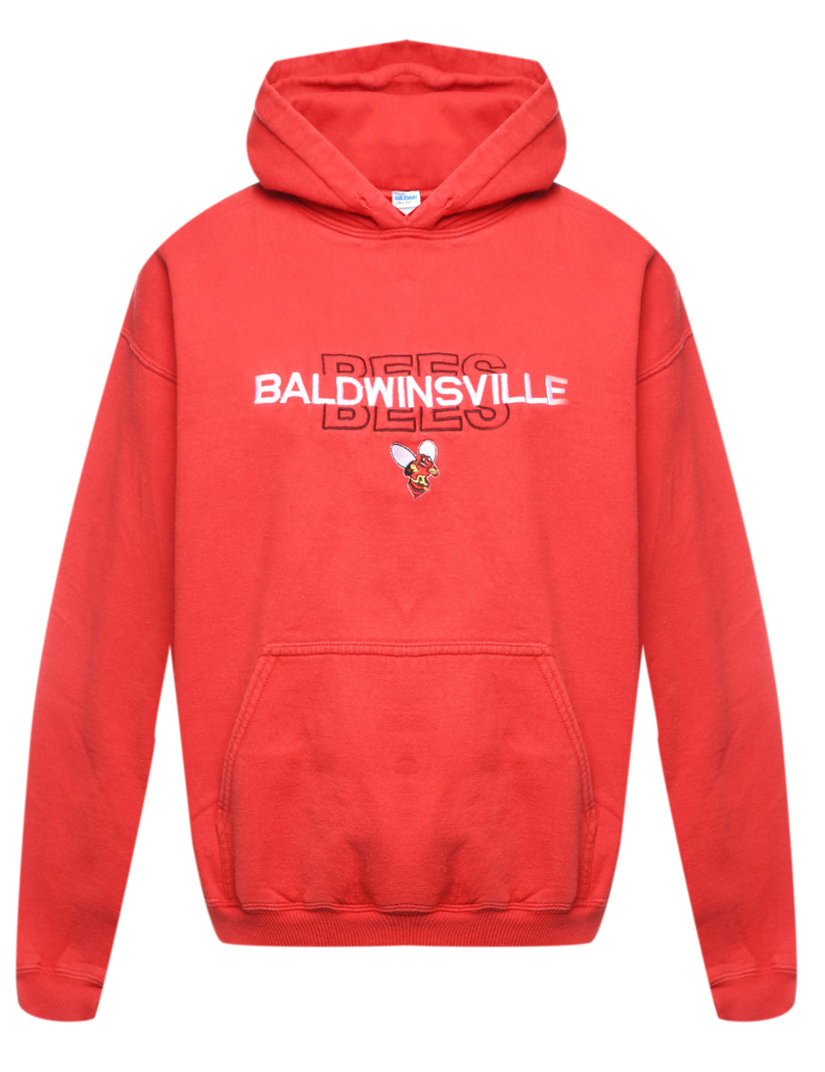Baldwinsville bees printed hoodie. Comes in red with one pocket.