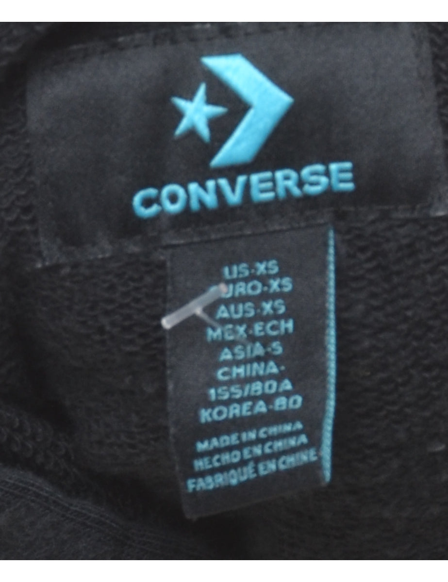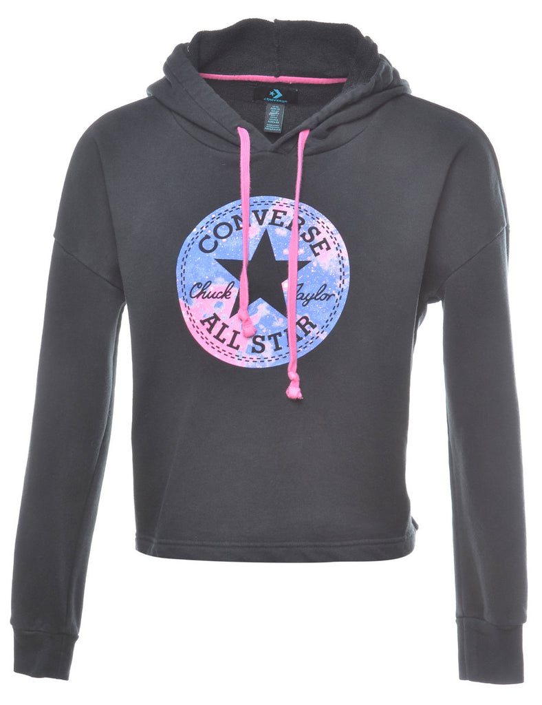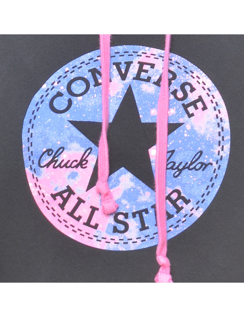 Converse all star printed hoodie comes in black with a drawstring neck and a drop shoulder.