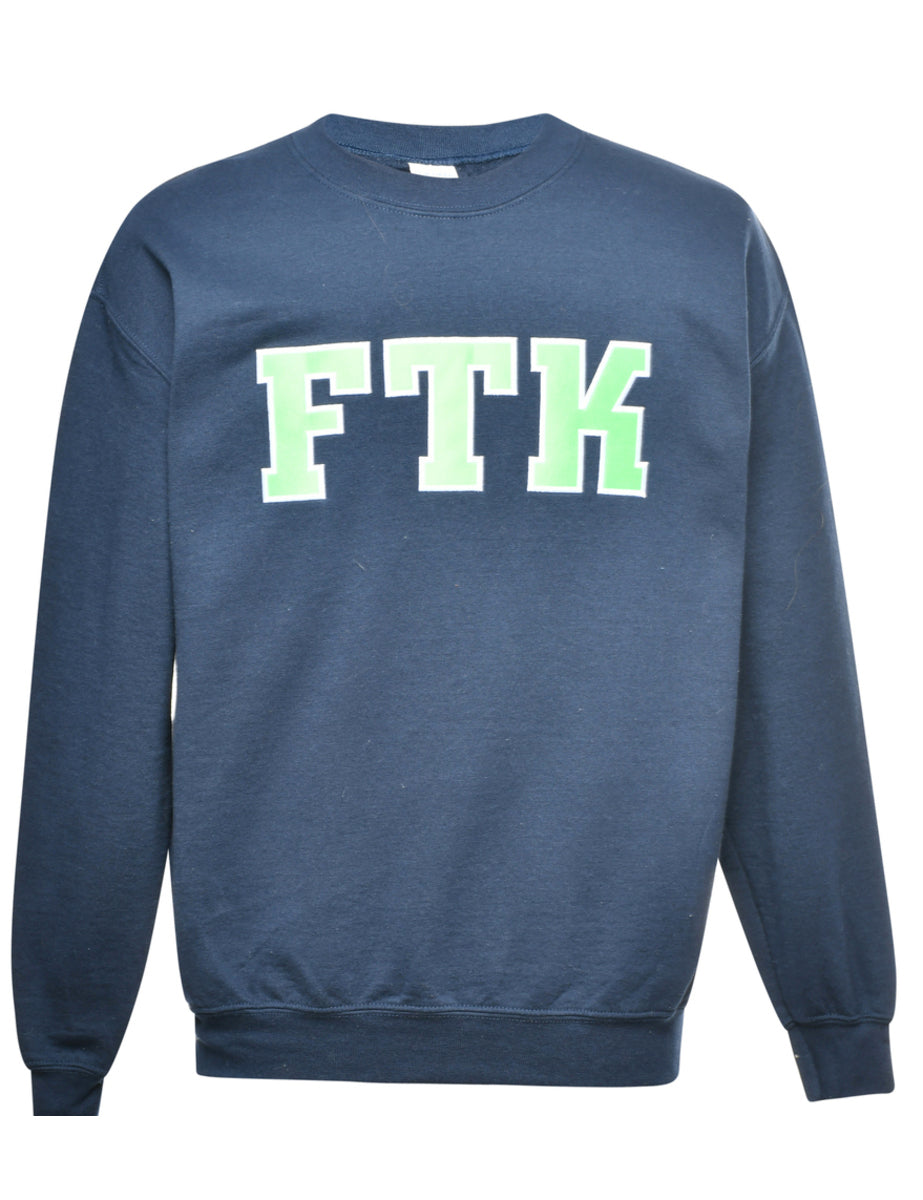 FTK printed sweatshirt. Comes in navy with ribbed cuffs and waistband.