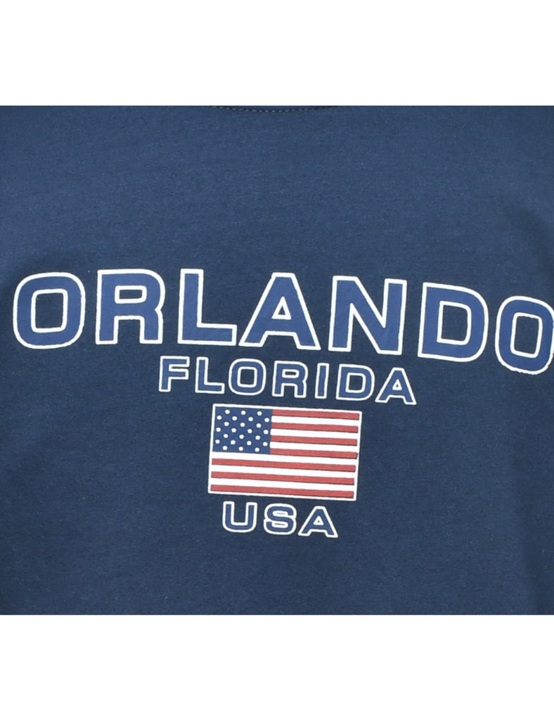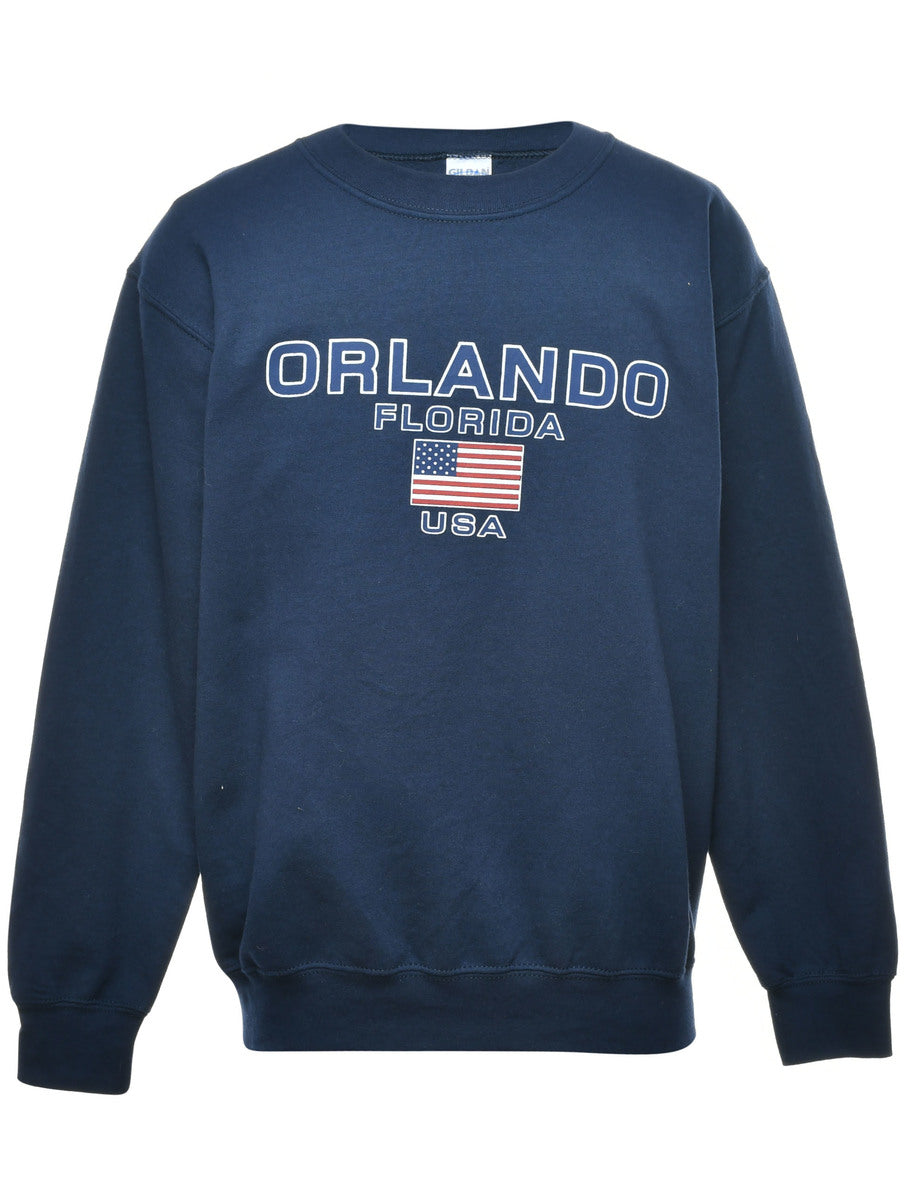 Gildan orlando florida printed sweatshirt in navy with ribbed cuffs and waistband.