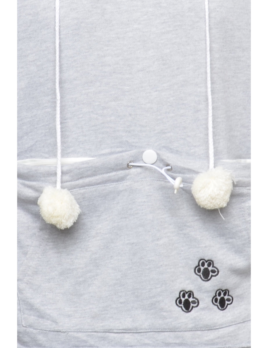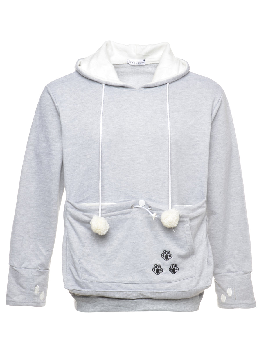 Hooded sweatshirt. Comes in grey with a kangaroo pocket.