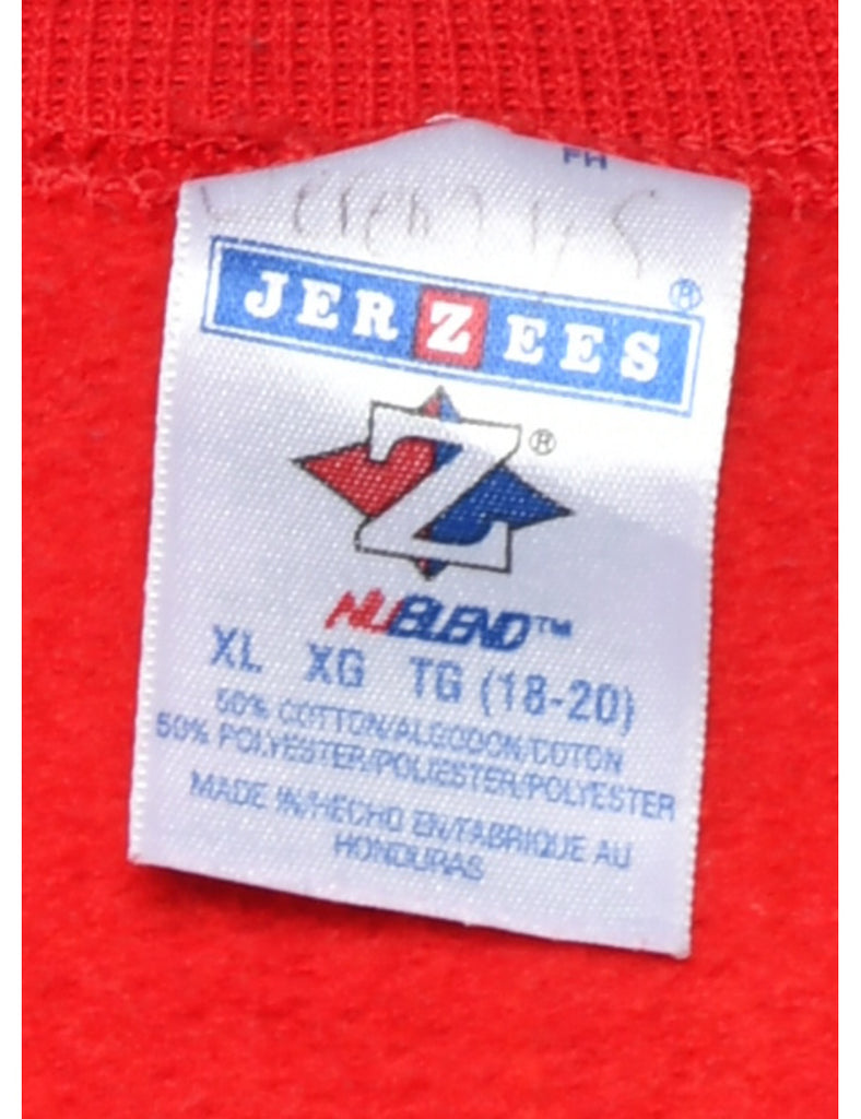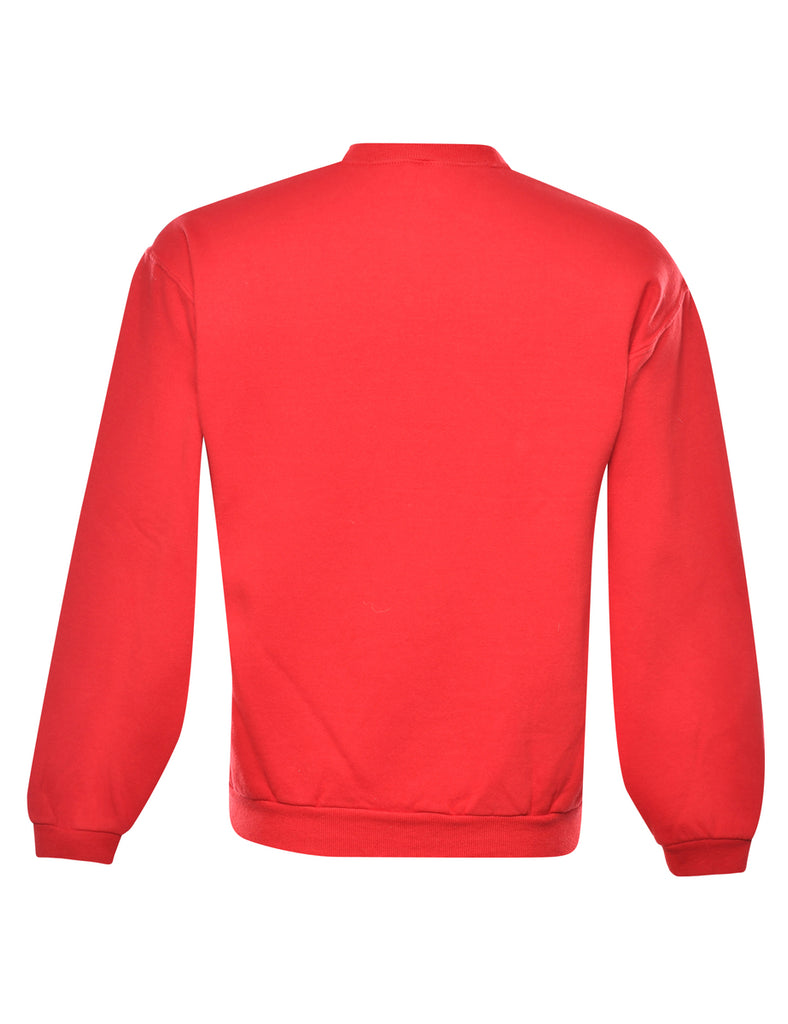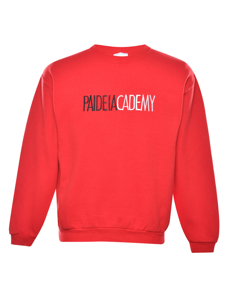 Paideiacademy printed sweatshirt in red. The size label mentions XL but based on the actual measurements we consider it a size S.