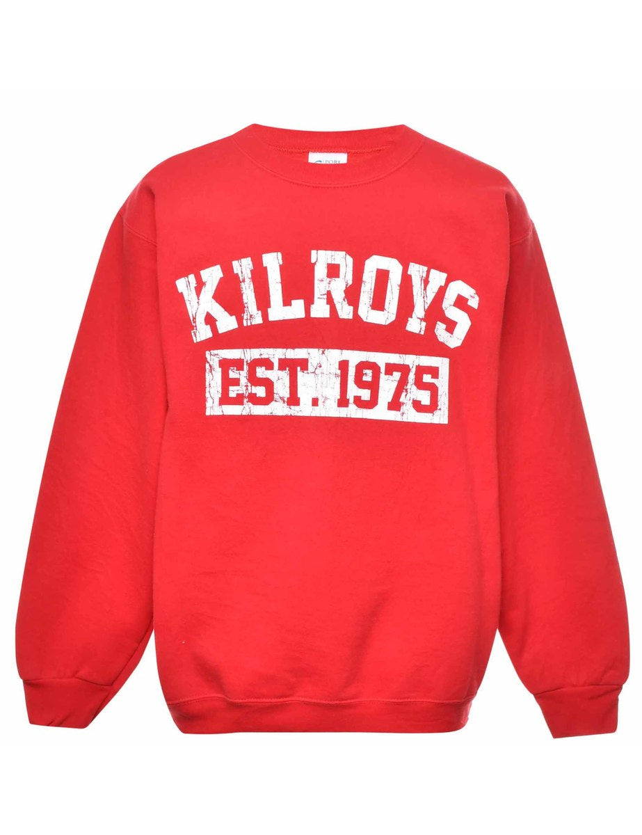Kilroys est. 1975 printed sweatshirt in red with ribbed cuffs and waistband.