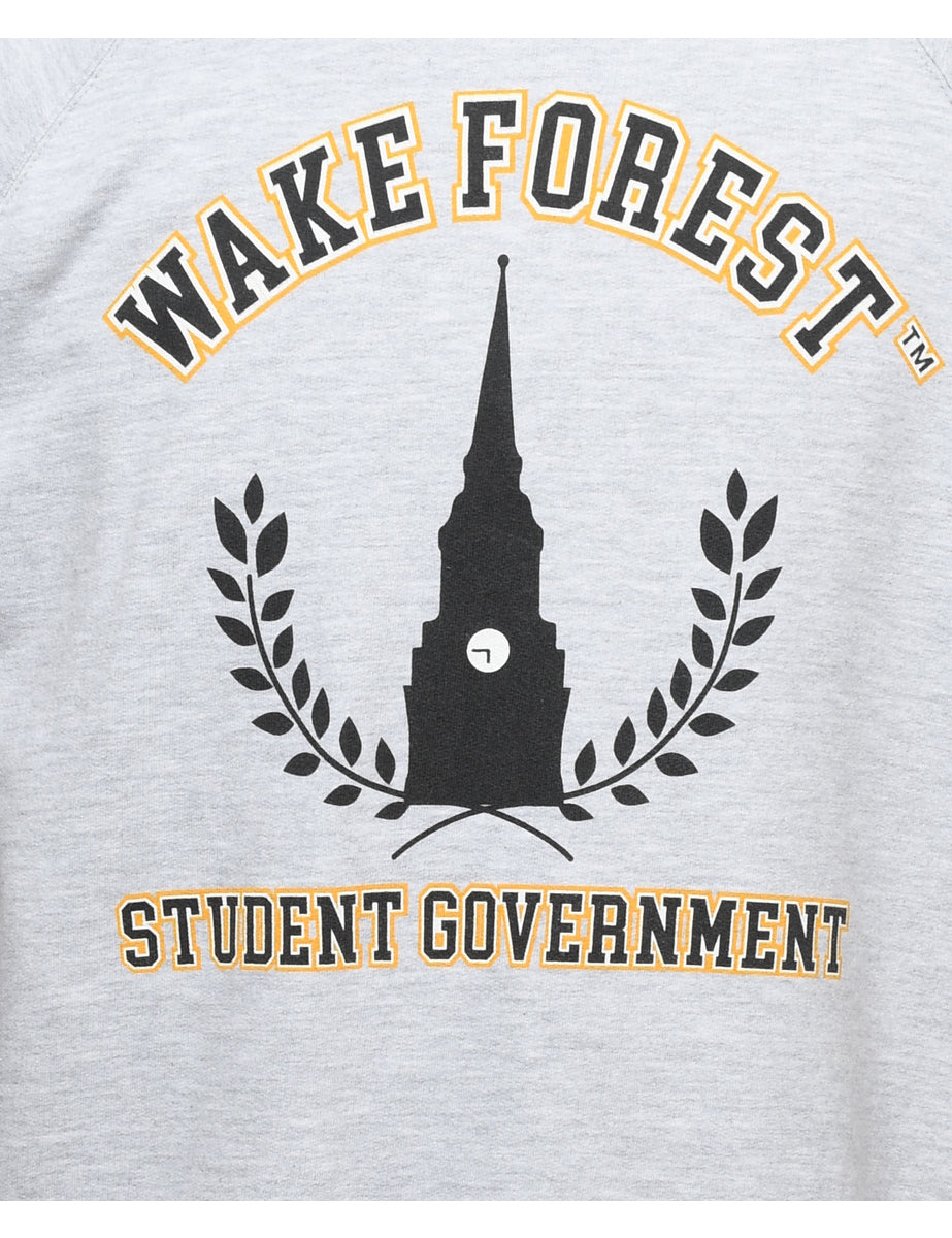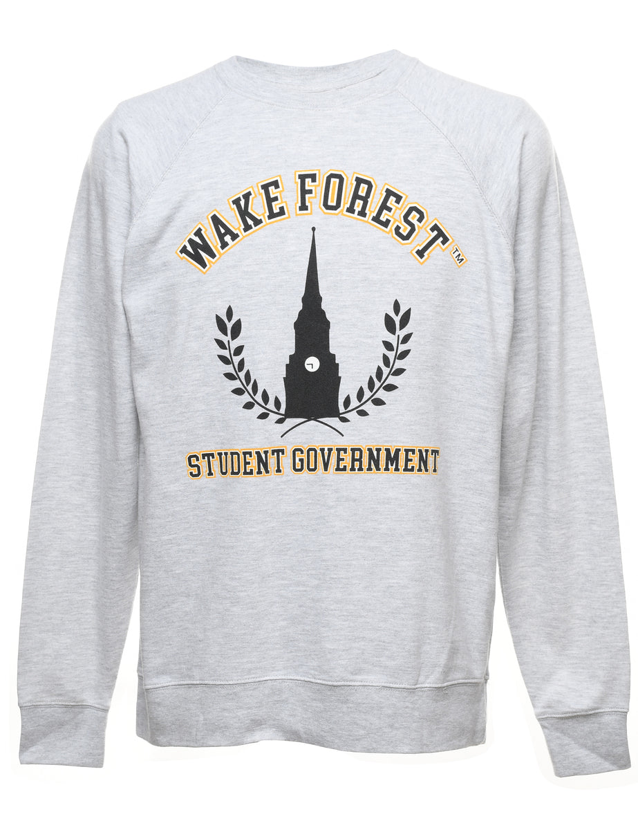 Vintage Marl Grey Wake Forest Student Government Printed Sweatshirt - L