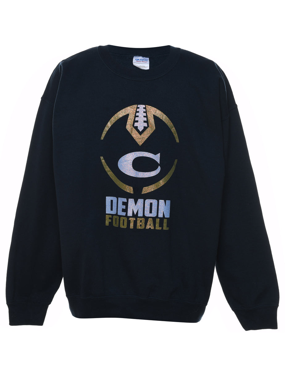 Vintage Navy Demon Football Printed Sweatshirt - L