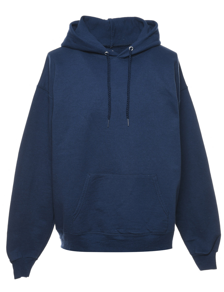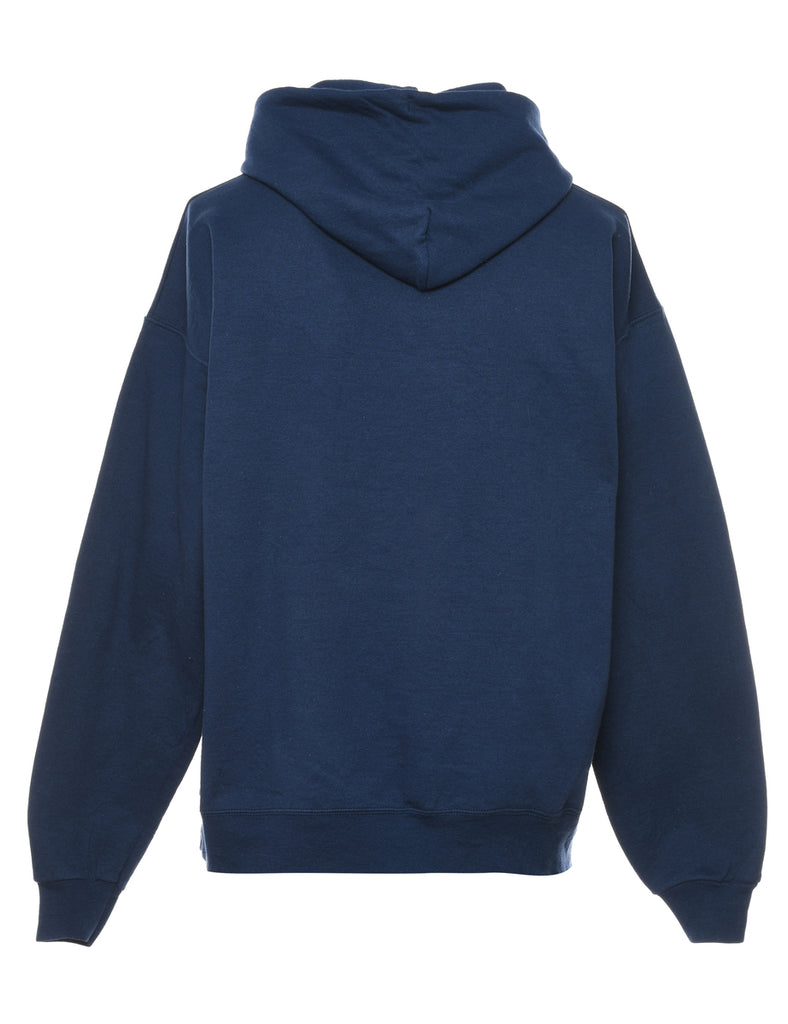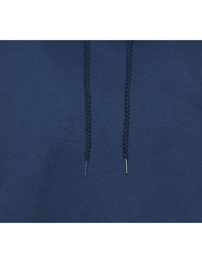 Hooded sweatshirt. Comes in navy with a drop shoulder and a pocket.