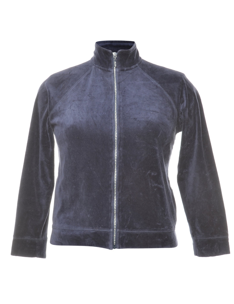Track top. Comes in navy with two pockets and raglan sleeves.