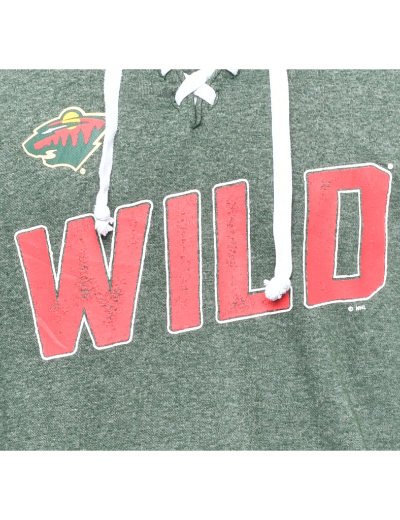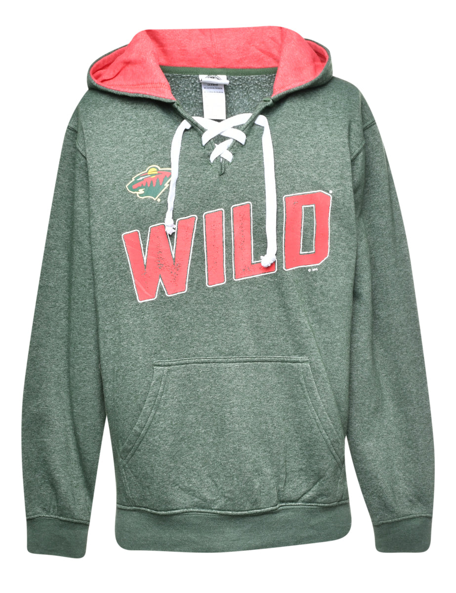 Nhl olive green hooded sports sweatshirt with one pocket.