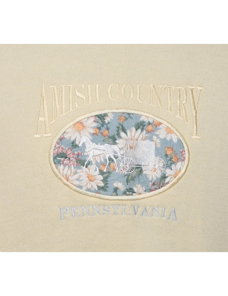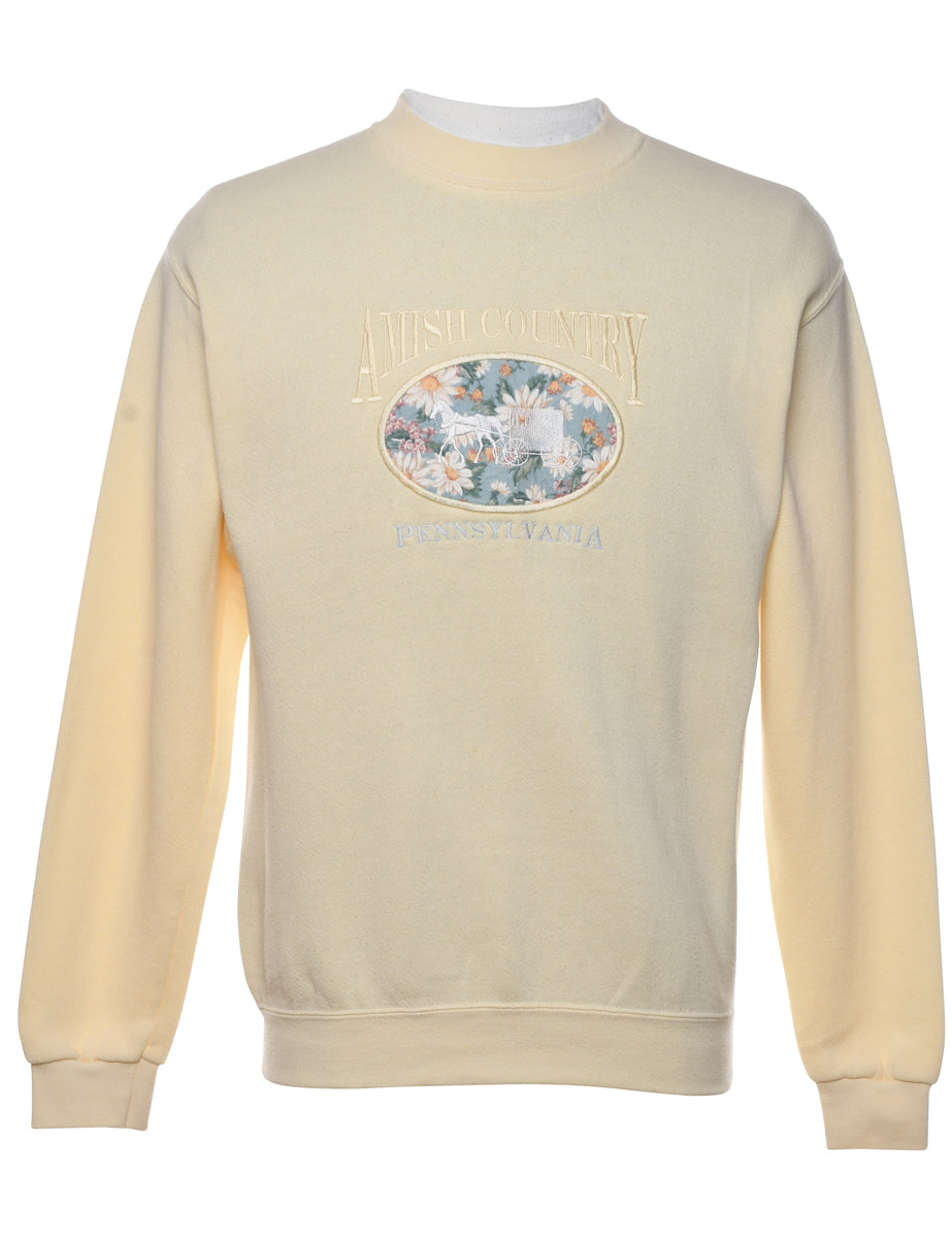 Vintage Pale Yellow Printed Sweatshirt - S