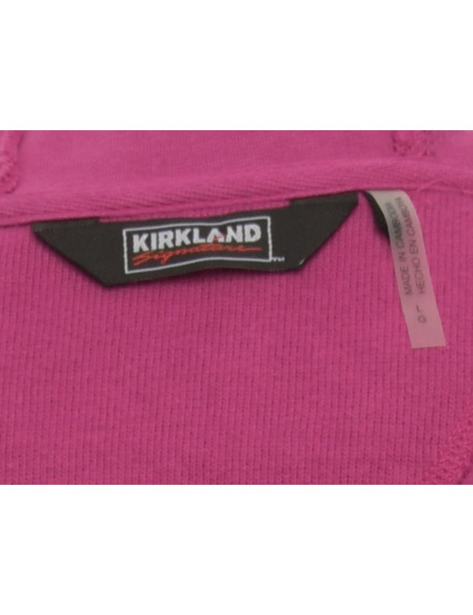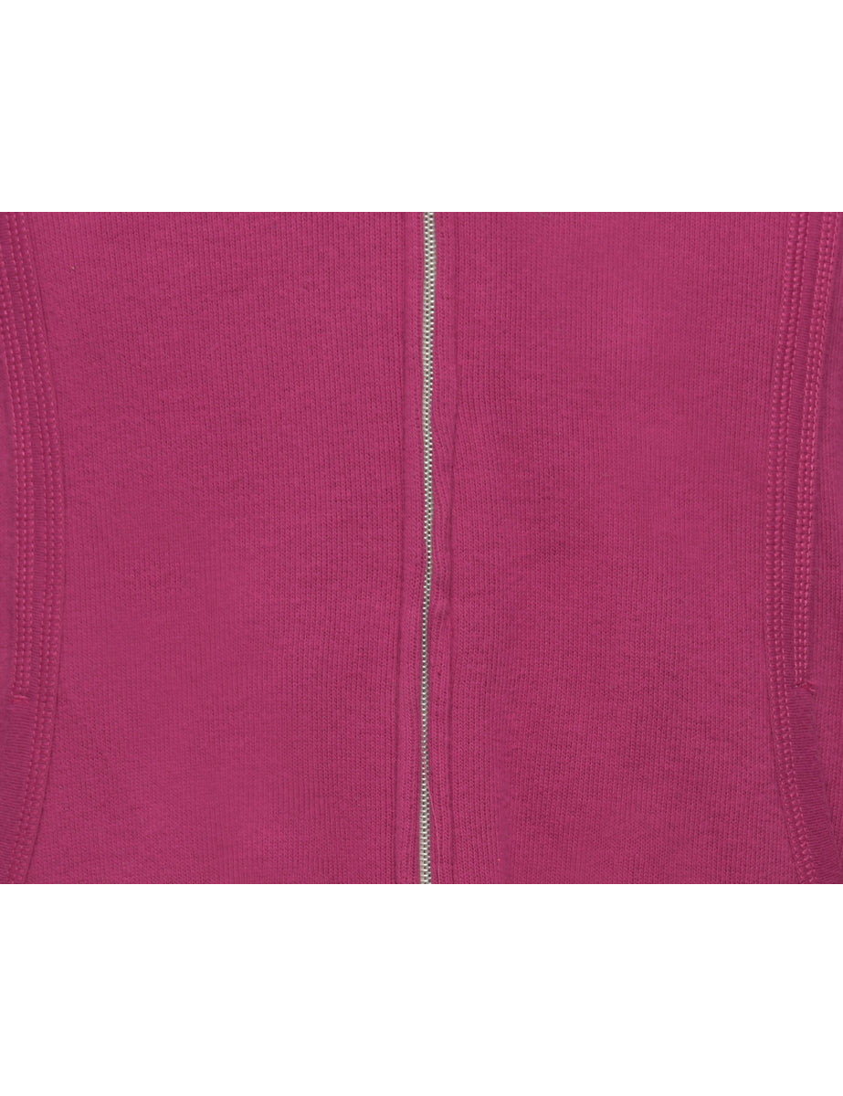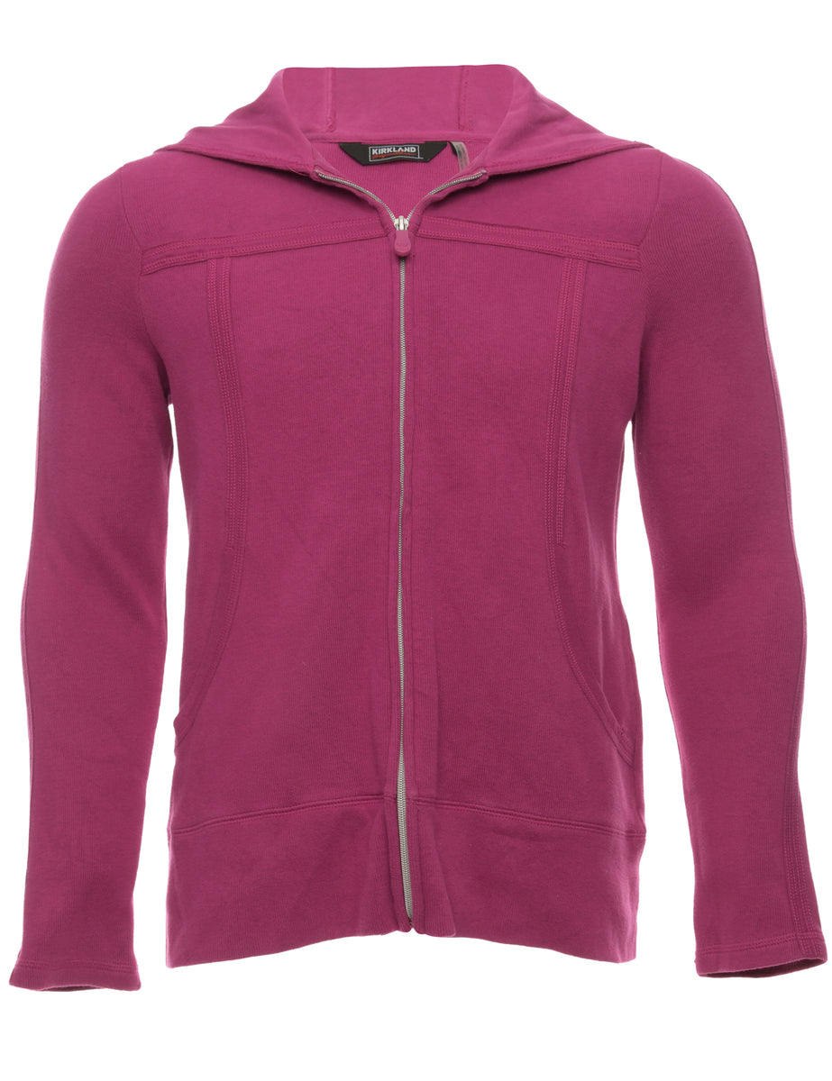 Hooded track top in pink with two pockets. The size label mentions L but based on the actual measurements we consider it a size M.