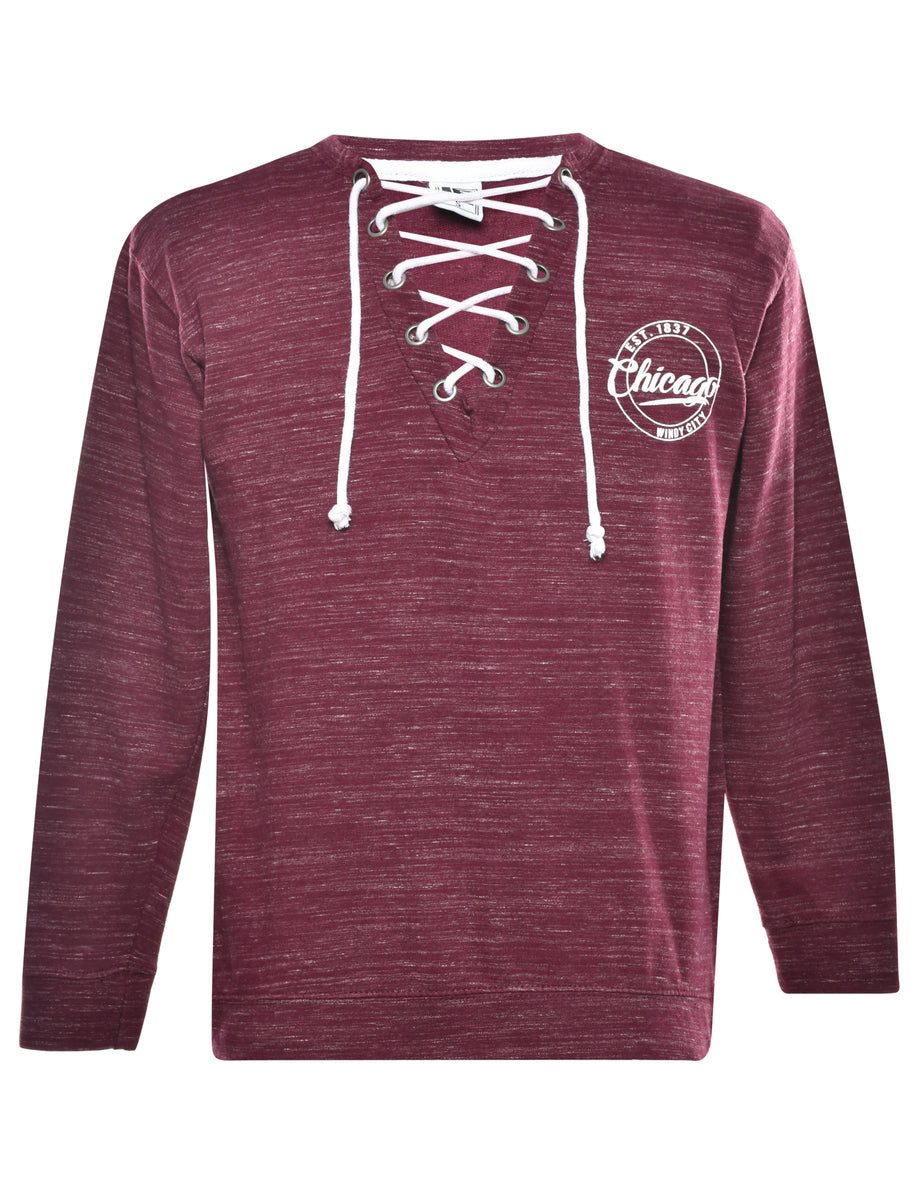 Chicago plain sweatshirt. Comes in plum with a drawstring neck.