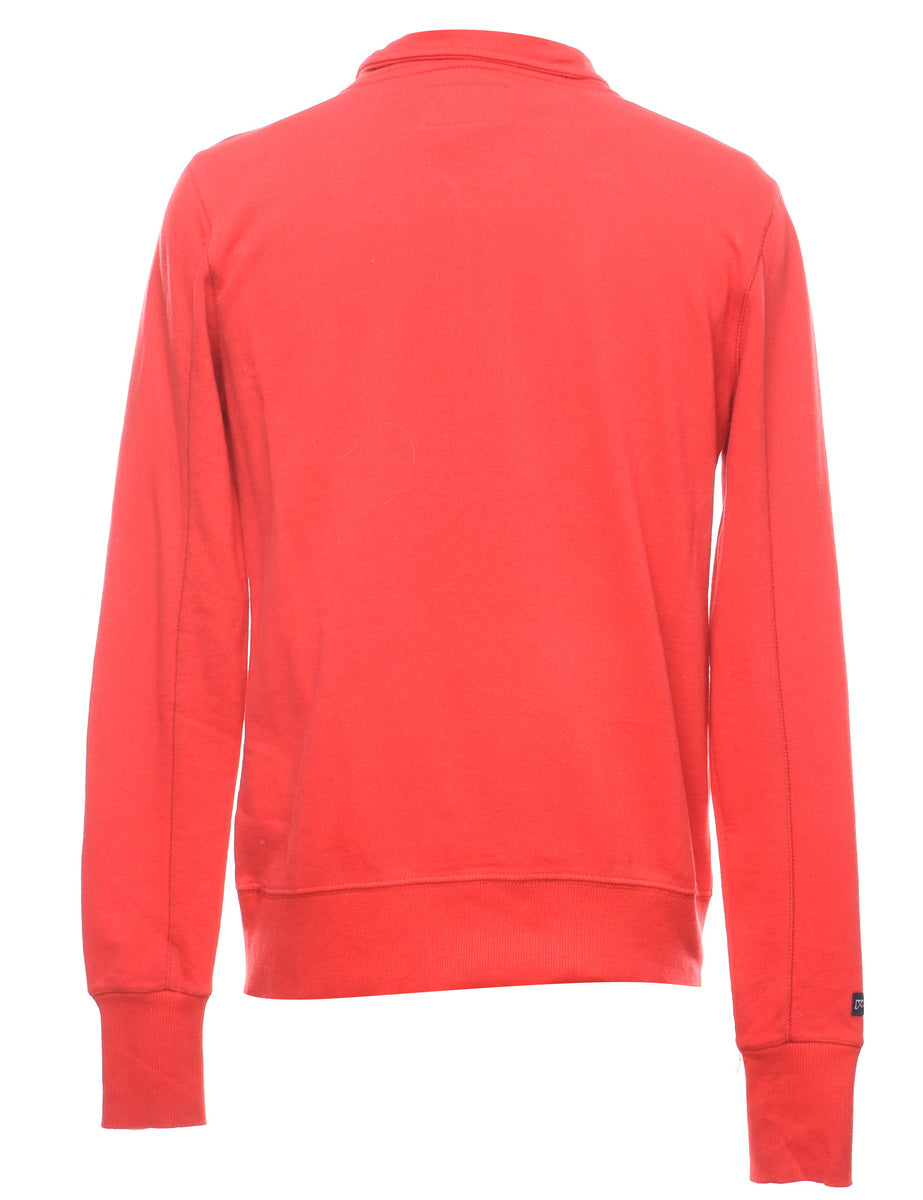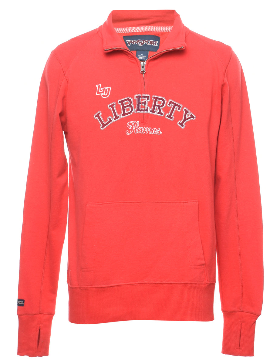 Quarter zip liberty flames printed sweatshirt in red with a pocket.
