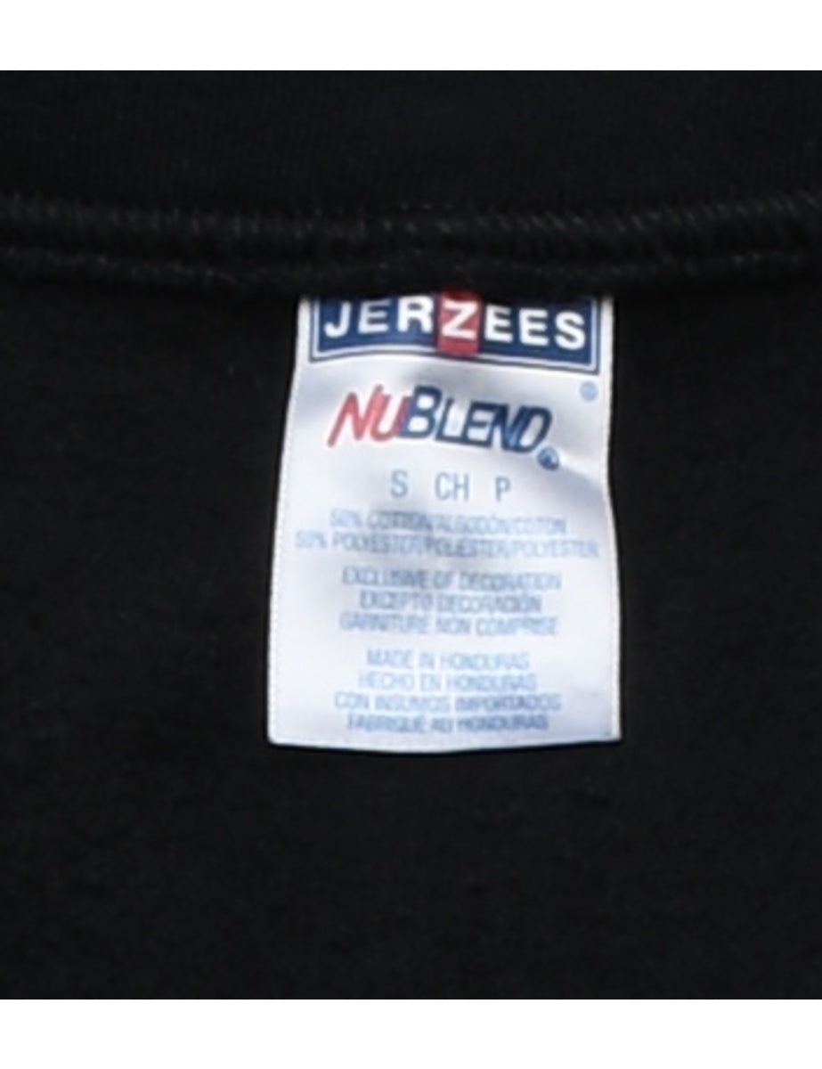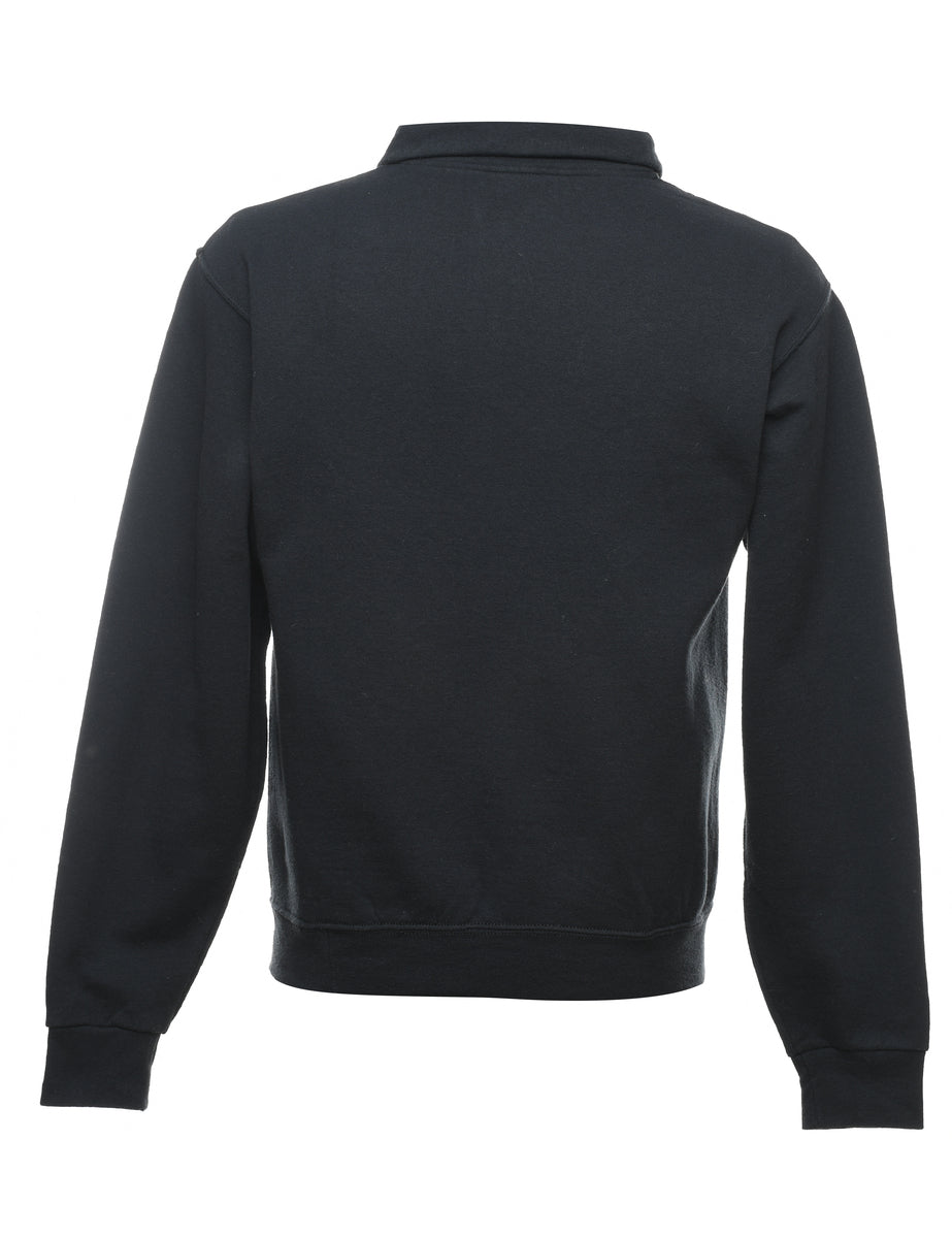 Quarter zip printed sweatshirt. Comes in black.