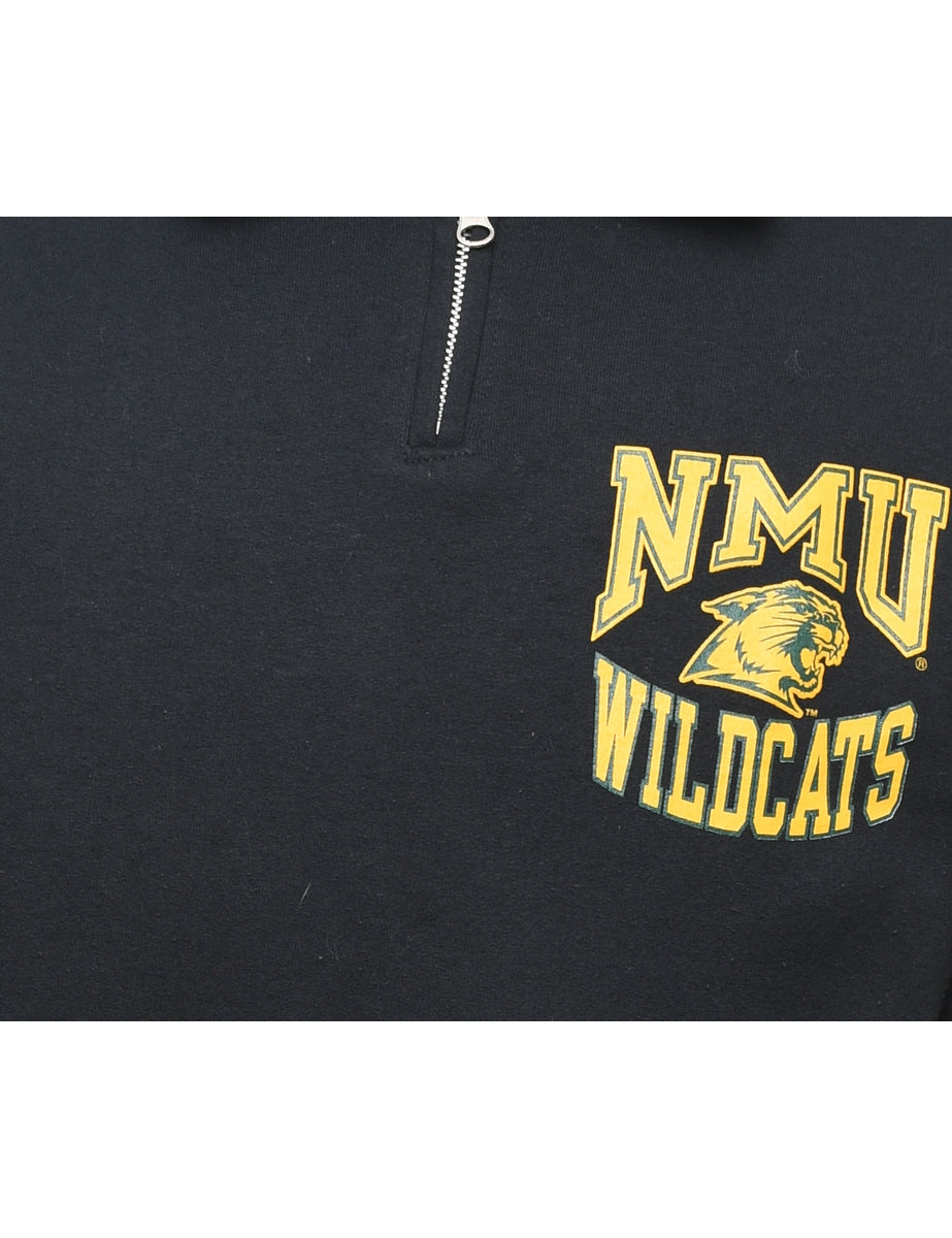 Vintage Quarter Zip NMU Wildcats Printed Sweatshirt - S