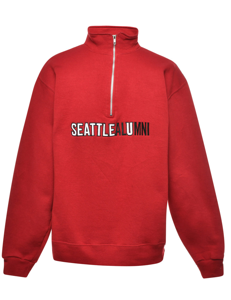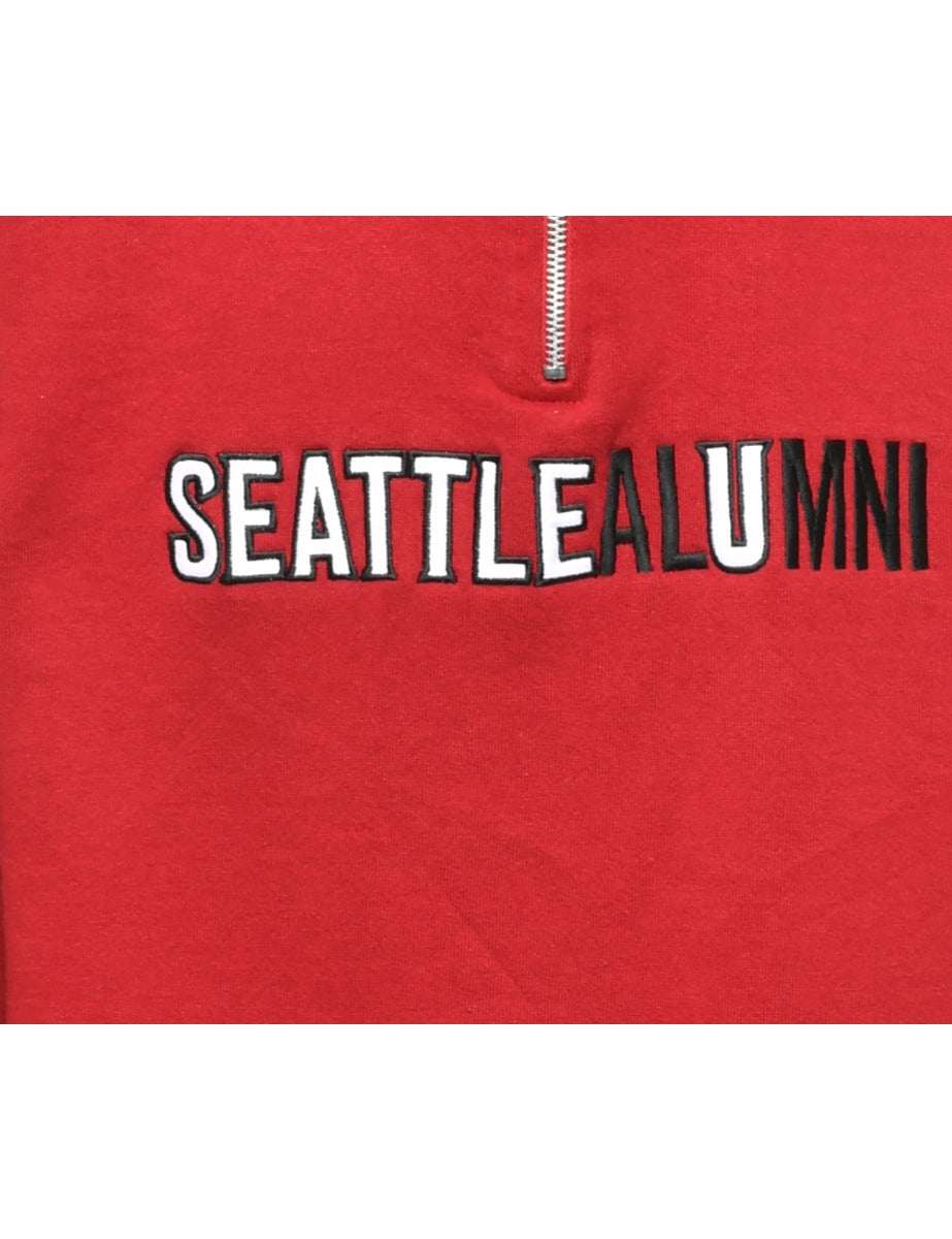 Russell Athletic seattleaumni printed sweatshirt in red with ribbed cuffs and waistband.