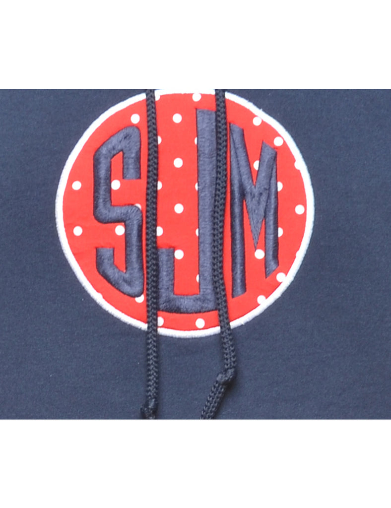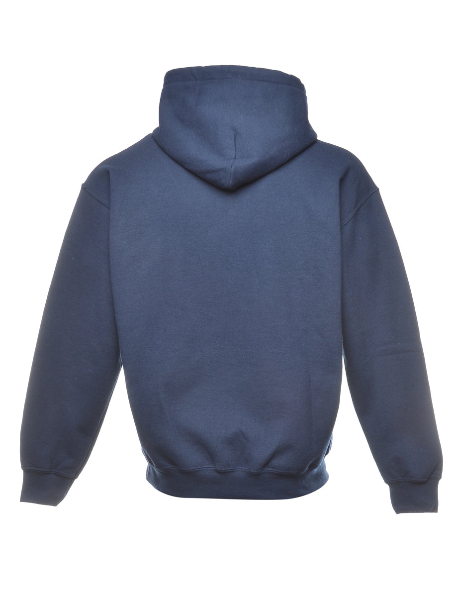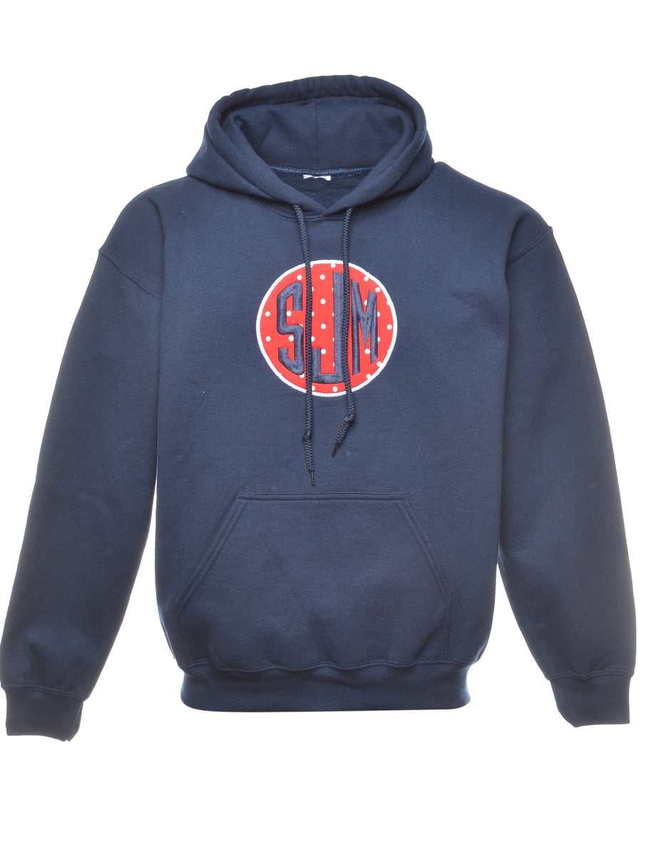 Sjm printed sweatshirt in navy with a hood and one pocket.