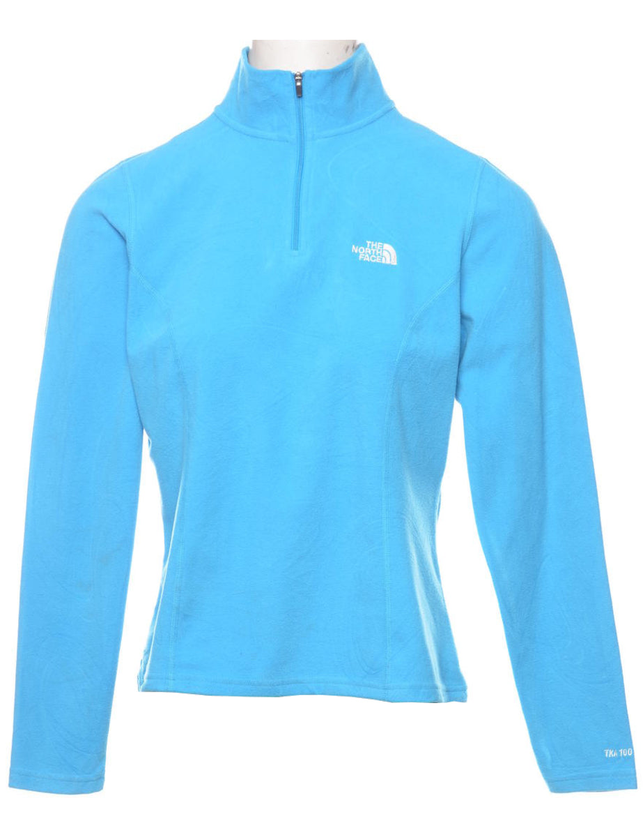 The North Face quarter zip fleece sweatshirt in turquoise with a high neck.