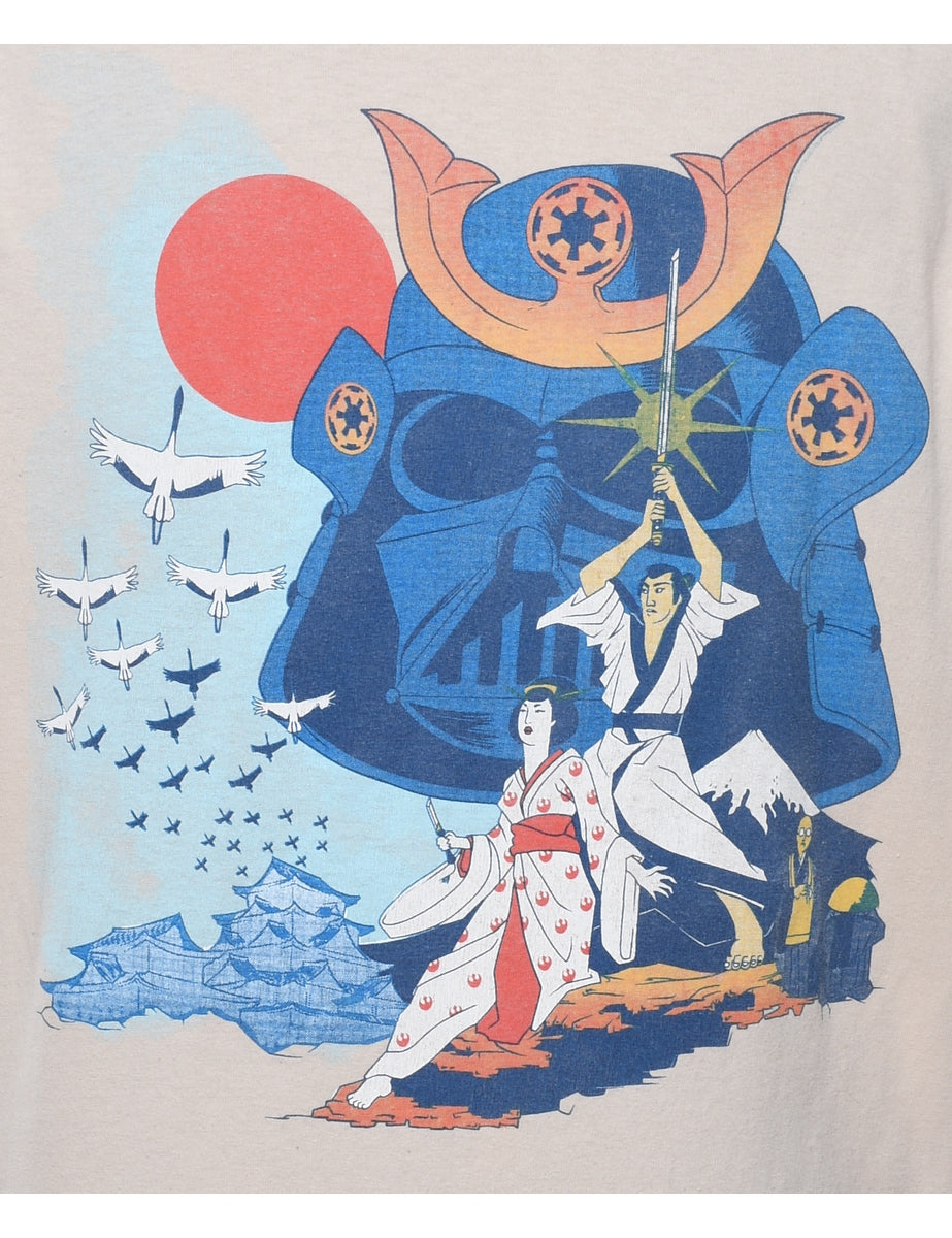 Off-white t-shirt with a Star Wars print. From the brand Gildan.
